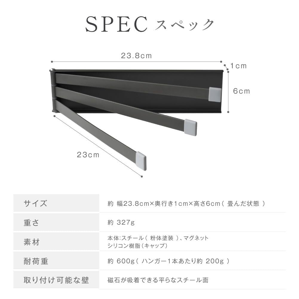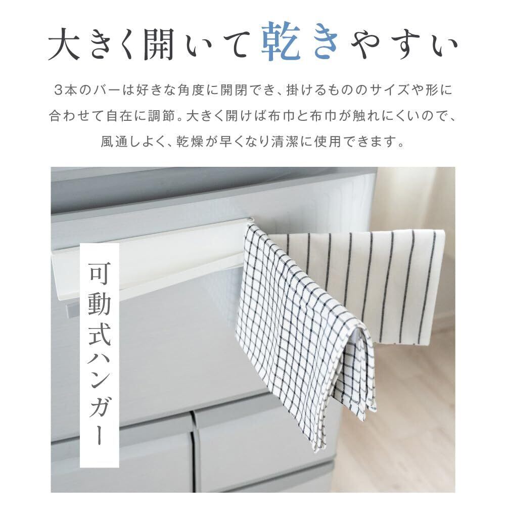 【mochizukistore】ふきん掛け マグネット 約W24×H6cm 薄型 収納 布巾掛け キッチン タオル掛け ふきん 3連 ふきん干し タオル 左右兼用 可動式 落下防止 キッチンクロス 干す タオルハンガー シンプル コンパクト 乾燥 磁石 台所用スリム ブラック