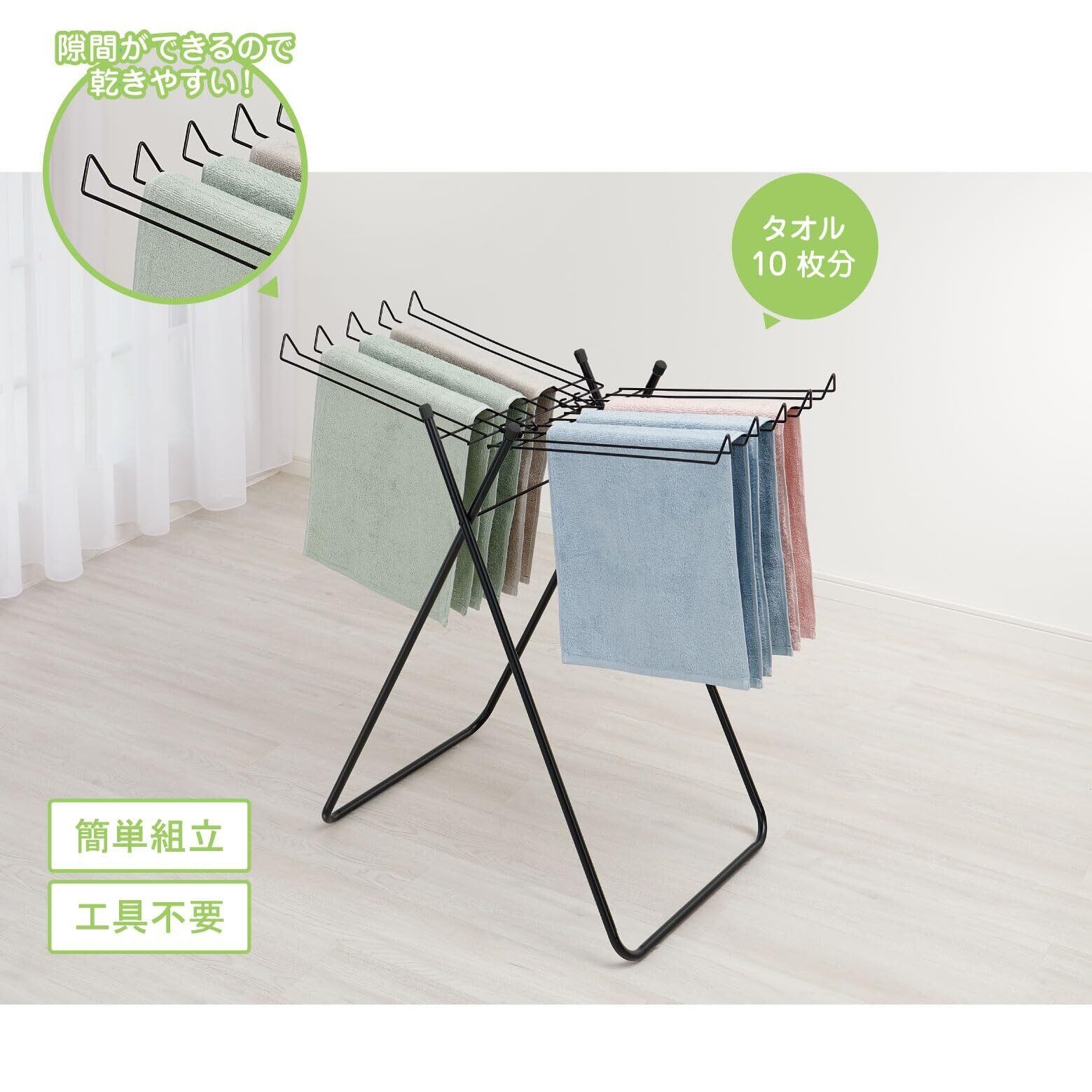 【特価セール】Belca(ベルカ) タオル掛け タオルハンガー 10枚干し 幅88×奥行50×高さ86cm マットブラック 折りたたみ コンパクト 軽量 タオルスタンド 洗濯 室内 部屋干し DI-TH02BK