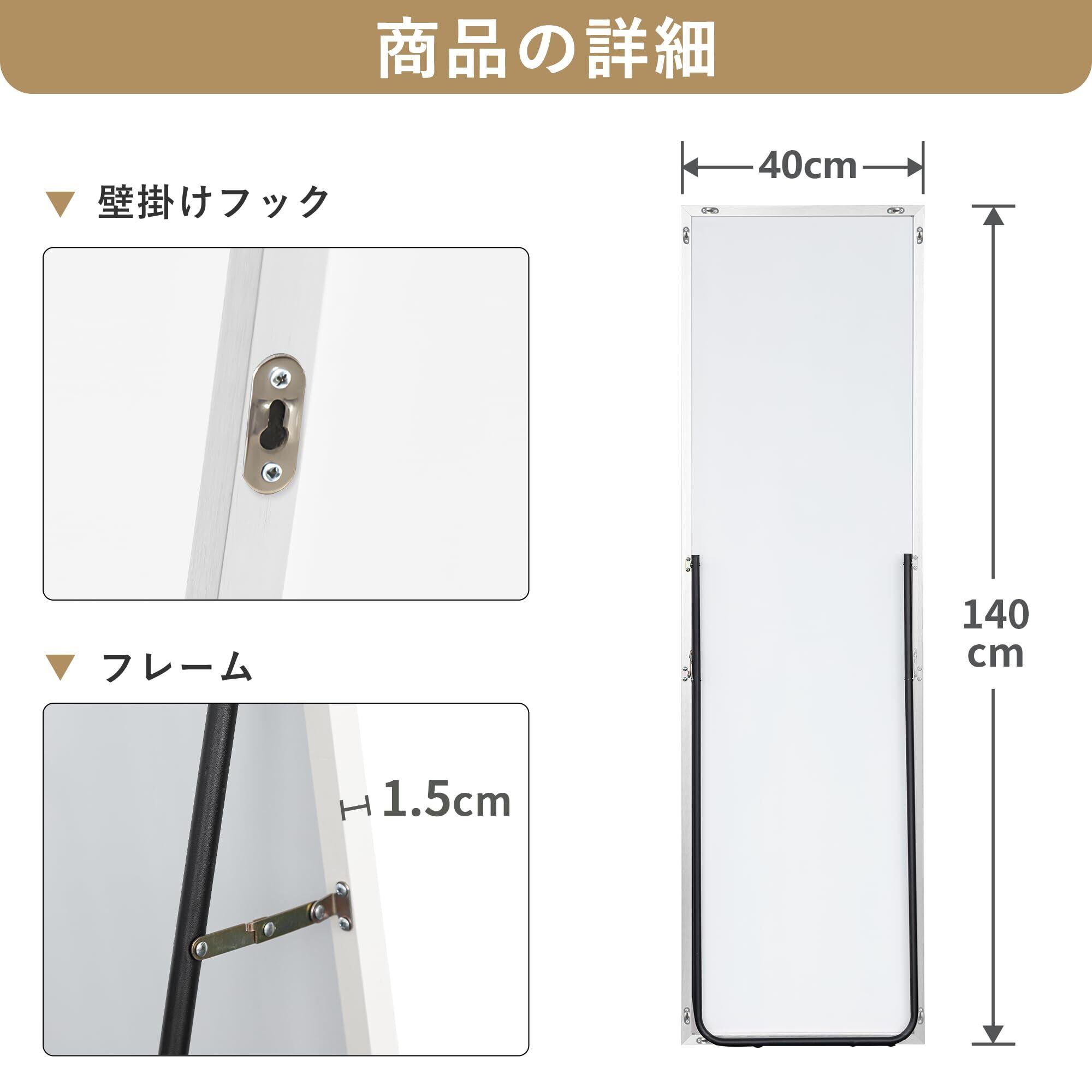 ミルオ君の鏡工房 全身鏡 姿見鏡 鏡 姿見 全身ミラー スタンドミラー 等身大鏡 ダンスミラー 全面鏡 3WAY使い 壁掛け スタンド付き 飛散防止加工済み おしゃれ 北欧 140x40cm ホワイト