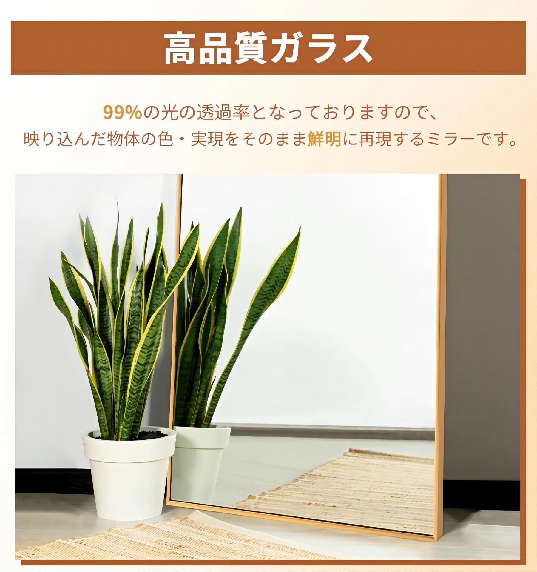 【高精細な鏡面でリアルな映像を再現】高品質なガラス素材を使用する全身鏡、顔や全身の映像をクリアに映し出します。毎日のコーディネートチェックや身だしなみ確認に最適です。