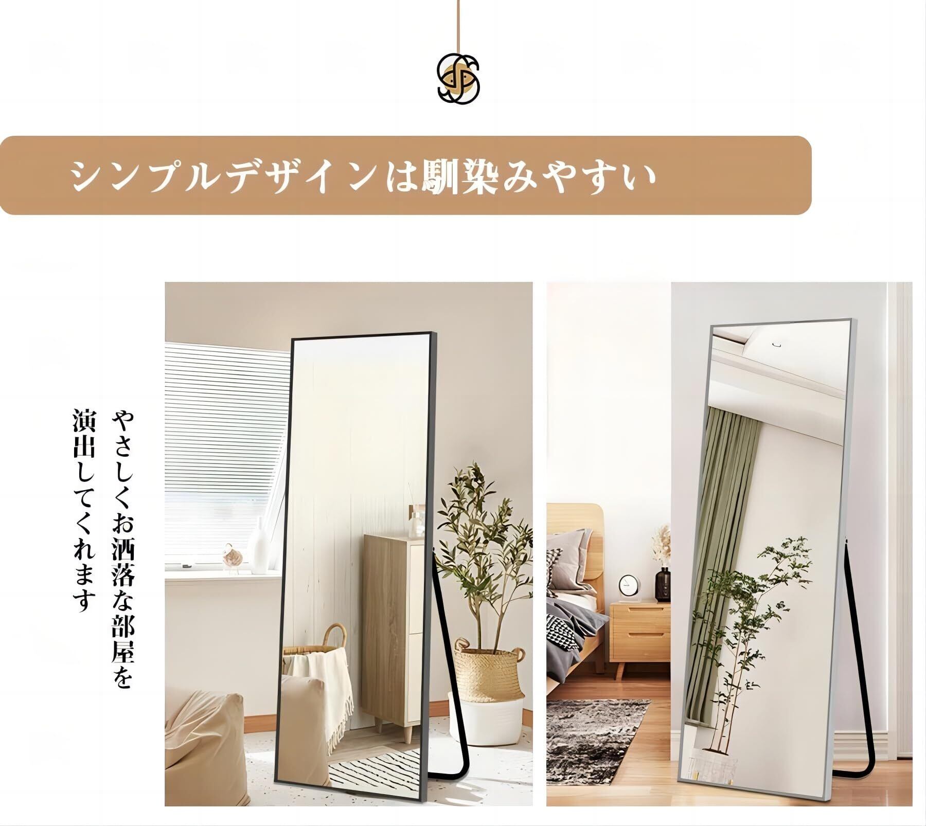 【アルミ合金フレームでおしゃれ&耐久性抜群】しっかりとしたアルミフレームを採用し、北欧風やモダンなインテリアにもマッチの全身鏡です。長期間使用できる耐久性を備えています