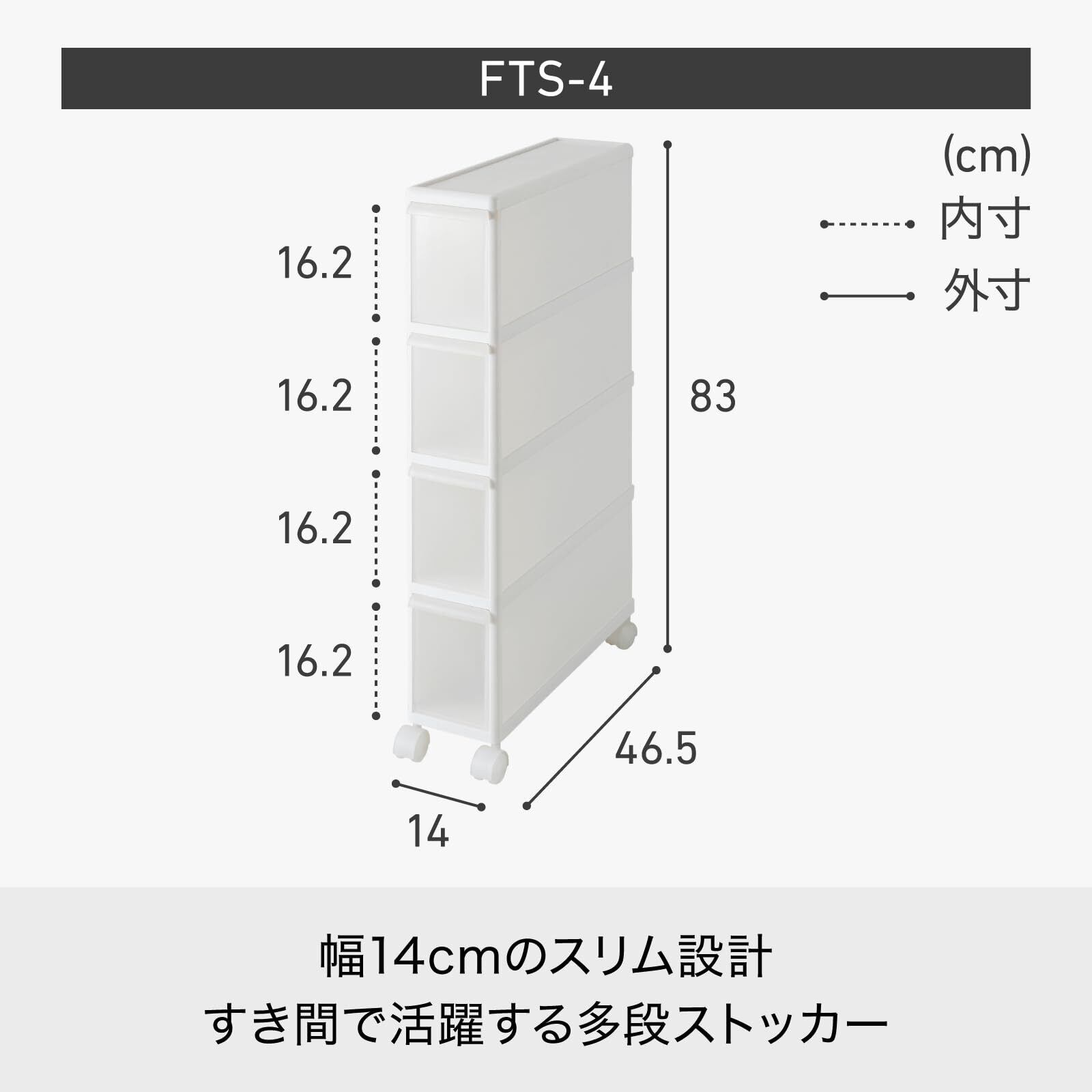 ライクイット(like-it) キッチン収納 引き出し すき間収納 約幅14㎝ スーパースリム 4段 約幅14×奥行46.5×高83cm ホワイト 日本製 FTS-4