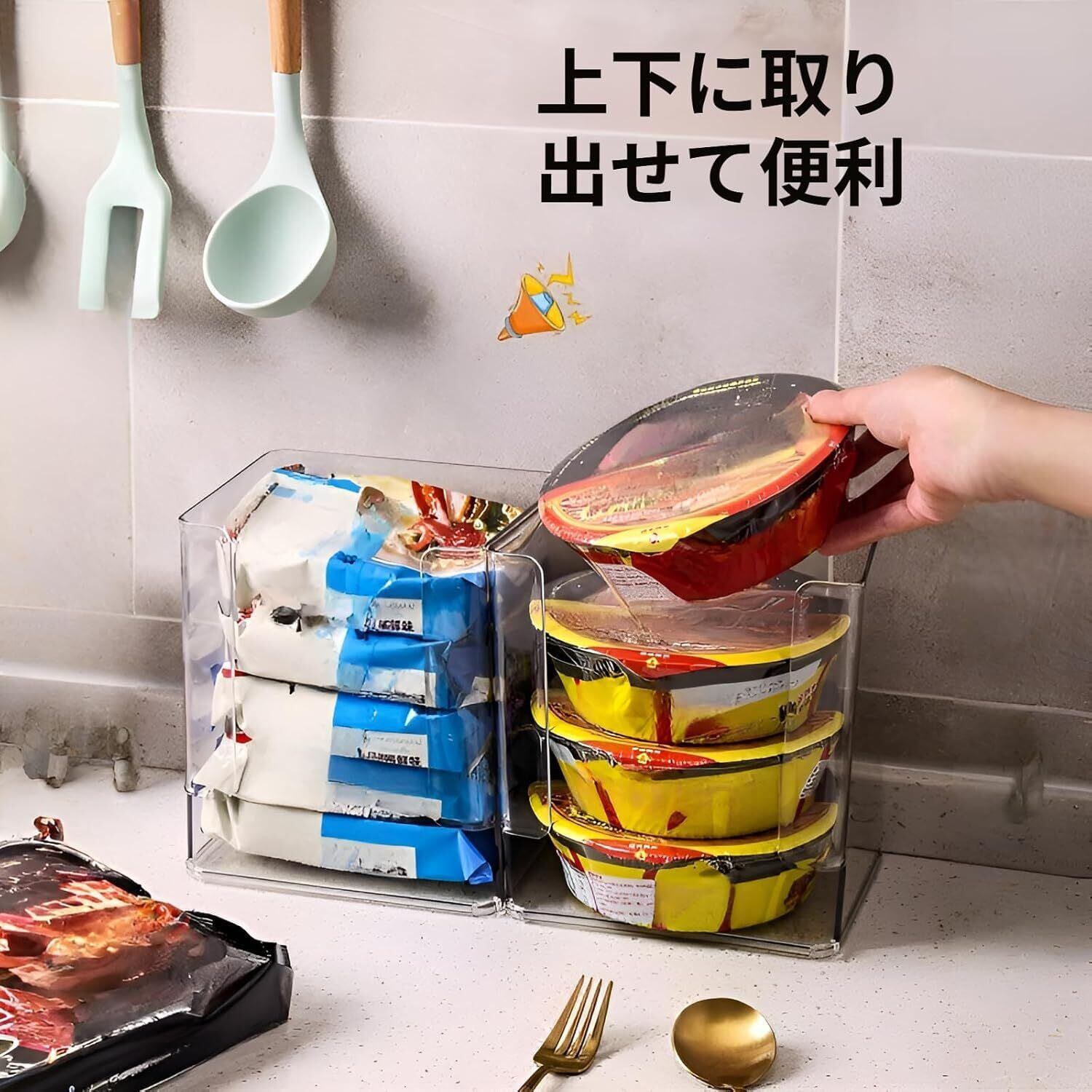 【透明で見やすい設計】一目瞭然の素材で、内部のアイテムがすぐに確認でき、探す手間を省きます。上から入れて下から取り出す塔式構造は、を容易にし、キッチン下収納やデスクトップ化粧台での使用に適です。インスタントラーメンとしても機能し、日常の効率を高めます。
