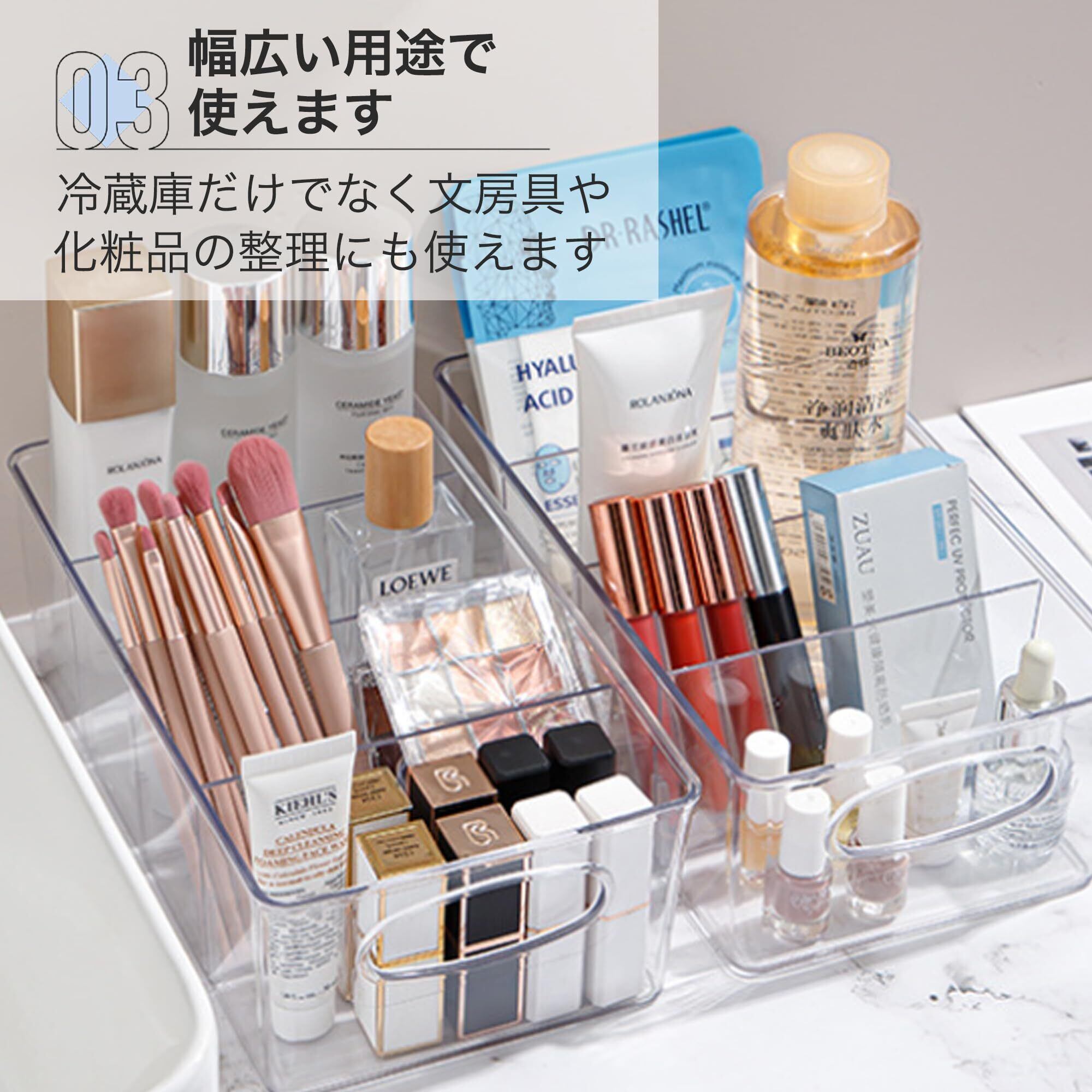 【幅広い用途で使えます】冷蔵庫だけでなく文房具や化粧品の整理にも使えます。大容量で持ち運びもしやすいです。