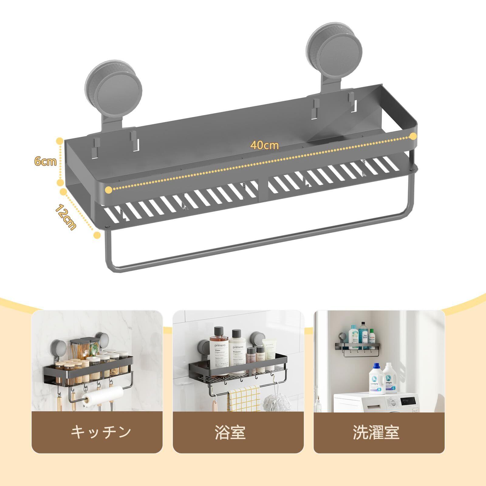 調味料ラック 調味料入れ 吸盤式 スパイスラック キッチン収納ラック 壁掛け 調味料 置き 穴あけ不要 5個移動式フック ふきんかけ付き コンパクト収納 台所収納 40cm