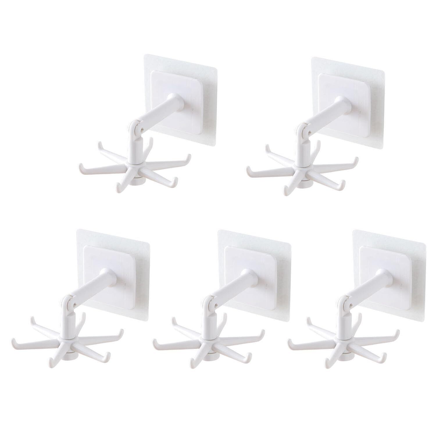 【特価セール】キッチンツールフック 5個セット 強力粘着式 360°回転 6連フック 折りたたみ式 防水防錆 穴あけ不要 耐荷重10kg 多機能 壁掛けフック キッチン 玄関 洗面所 オフィス収納用 (白い)