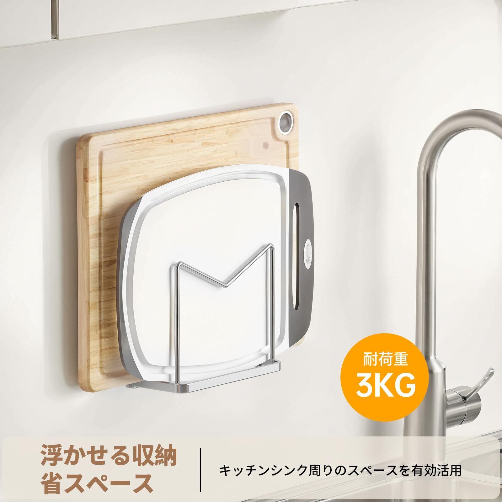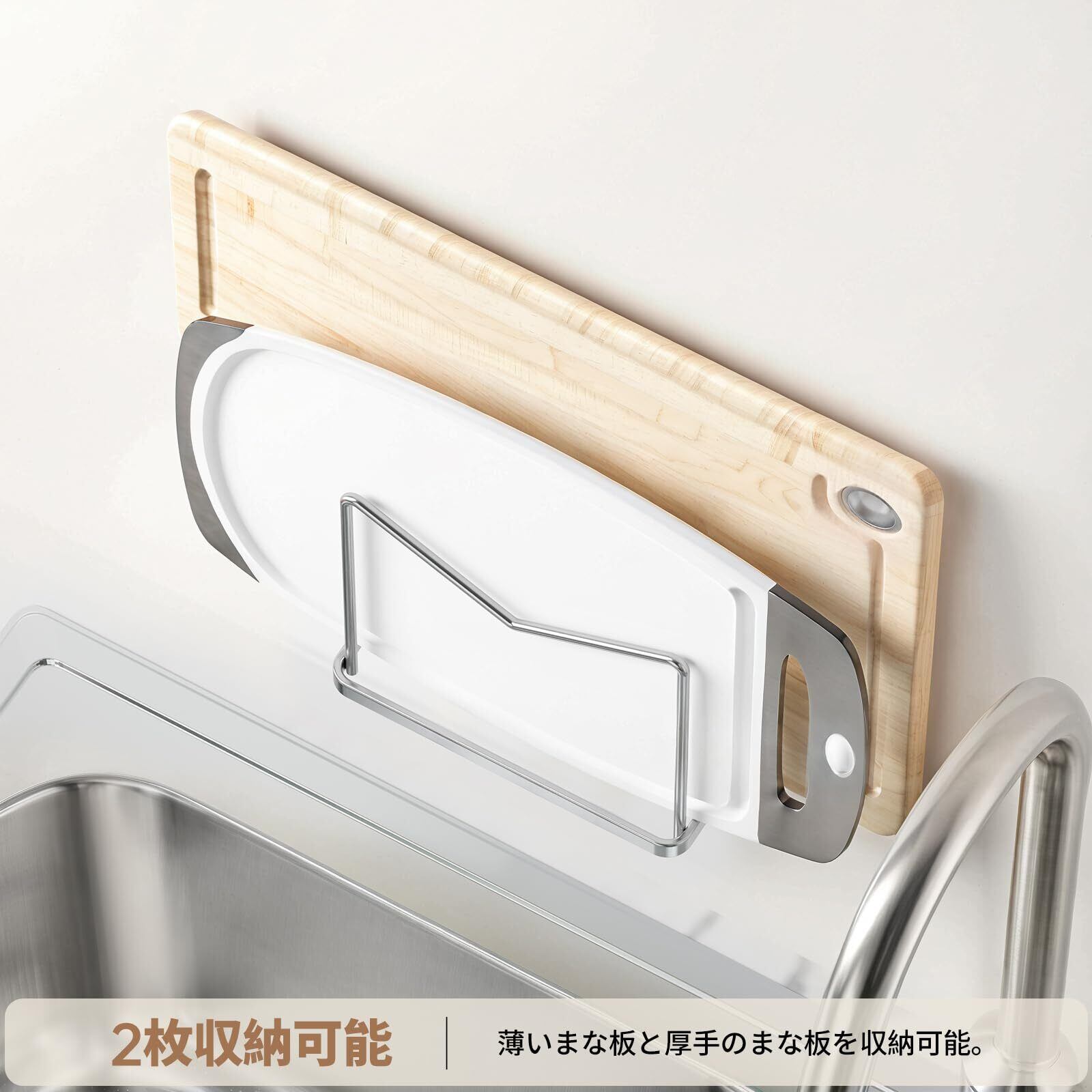 【まな板を2枚収納可能】まな板立ては前後2段構造で、厚み約2cmと約1.2cmのまな板を各1枚ずつ収納することができます。最大耐荷重3kg。厚いまな板と薄いまな板を同時に収納可能。収納力に優れているので、手の届きやすいところに置いておけば、料理の効率もアップしそうですね!