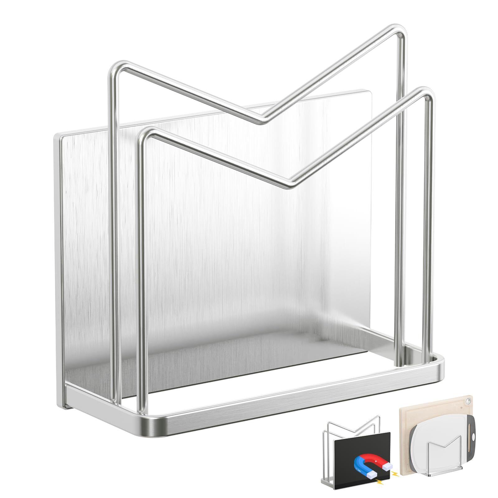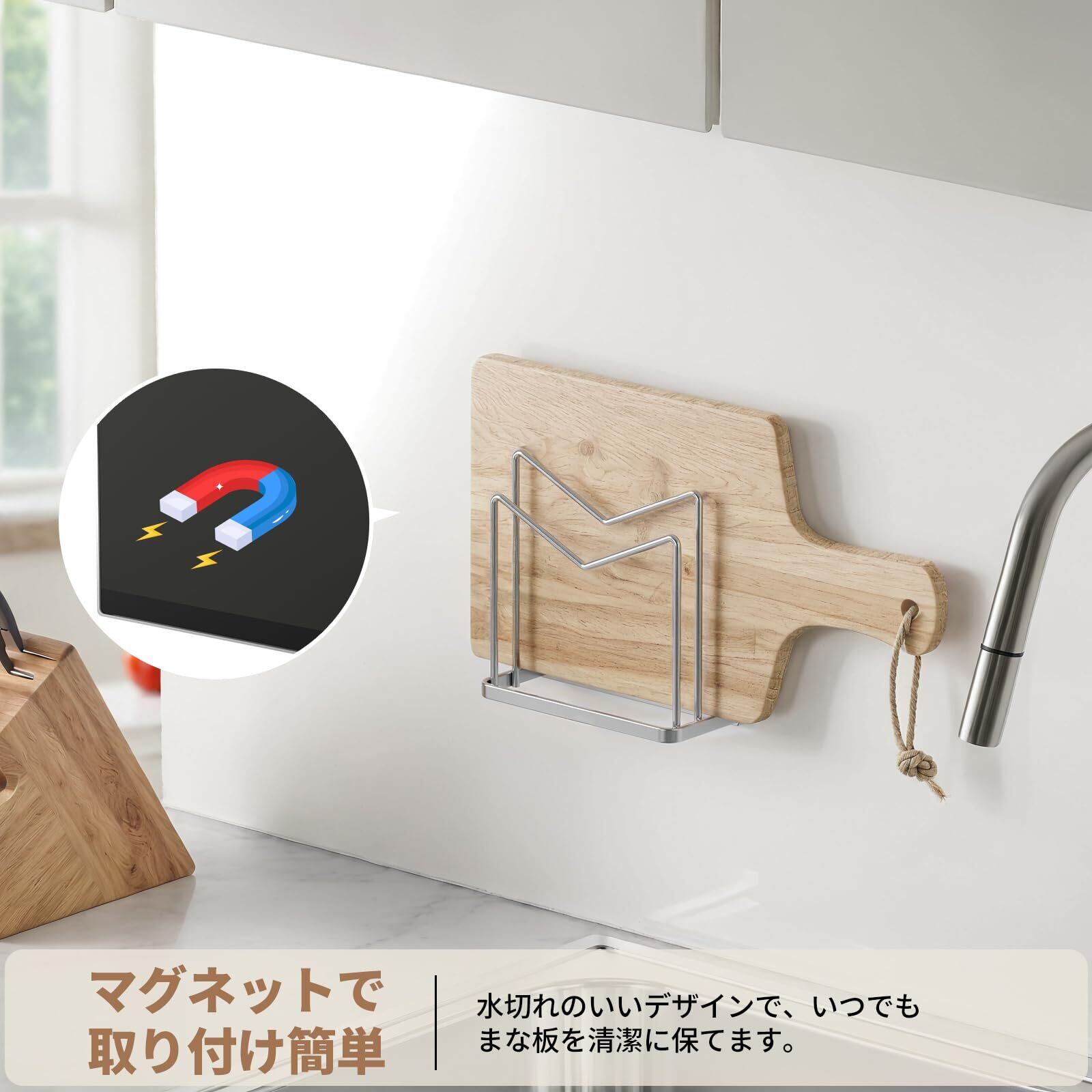 マグネット まな板スタンド 18-8ステンレス まな板立て 防錆 キッチン まな板ホルダー 強力磁石 まな板 収納 まな板ラック 水切り 浮かせる収納 省スペース 約W13.5XD5.5XH12.5cm シルバー