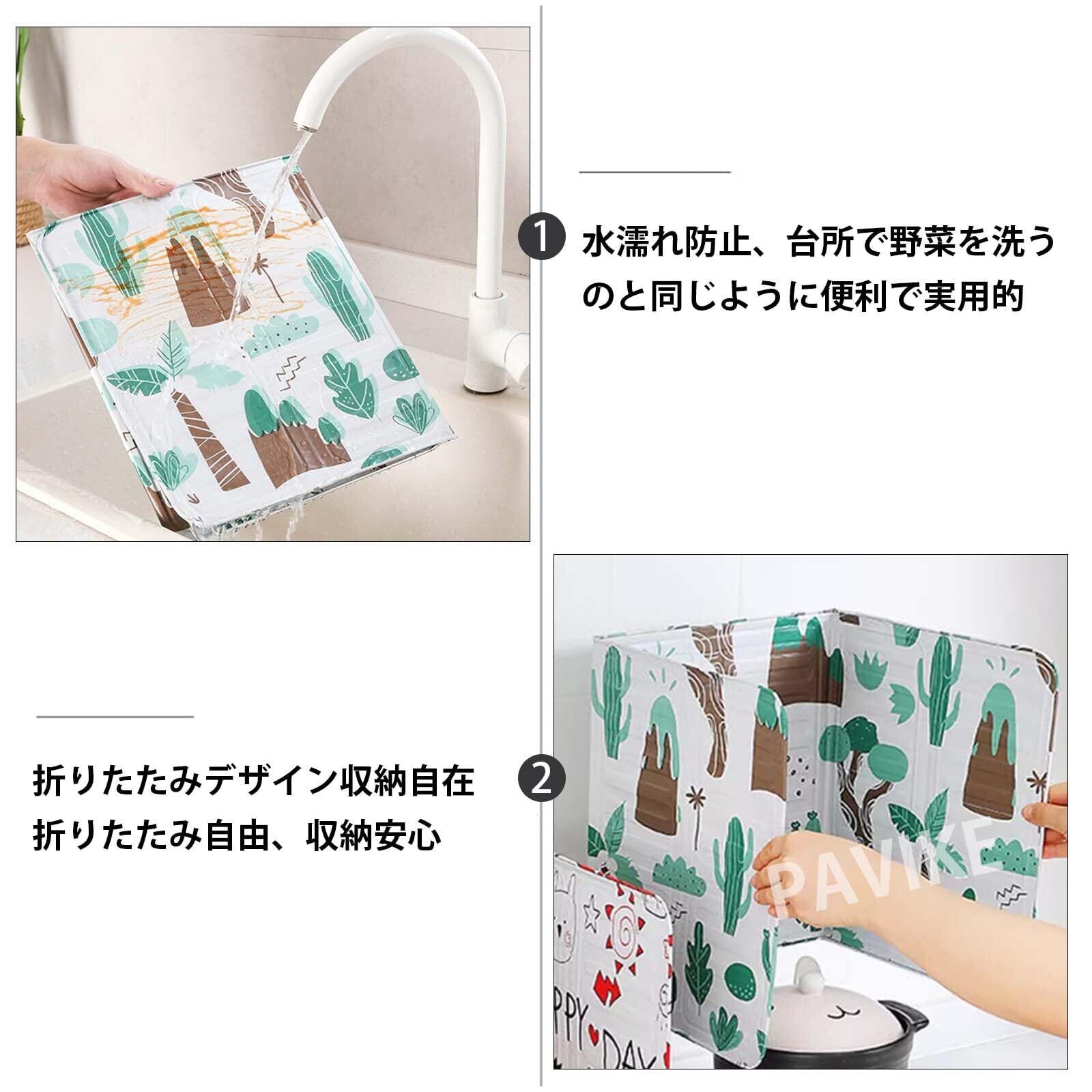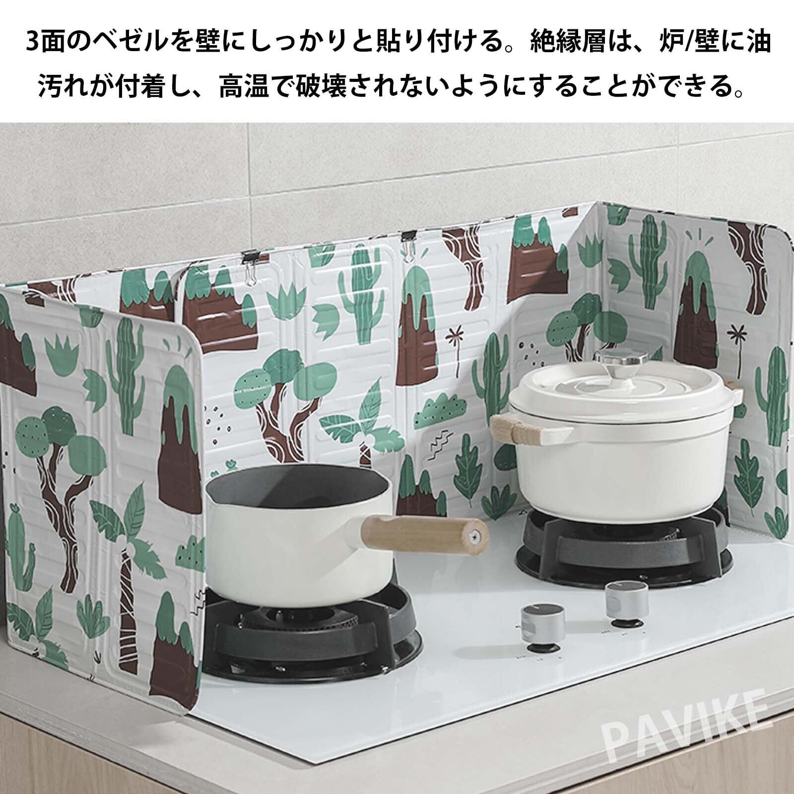 PAVIKE油はねガード【2個入り】コンロ油跳ねガード レンジガードガスコンロ用 3面を折り畳み、油汚れの飛散を防止し、洗浄しやすく、キッチンテーブル、電磁炉などに適し