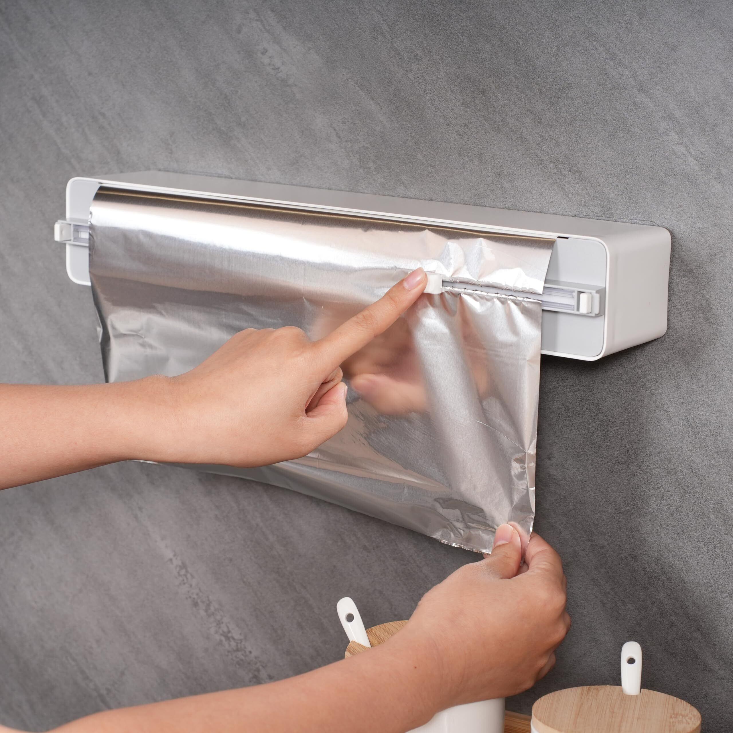 【特価セール】ラップケース ラップカッター ラップカット ラップホルダー クッキングシート キッチン アルミホイルケース 双方向切断 冷蔵庫 マグネット キッチン箔/フィルムディスペンサー キッチリ切れる スライドカッター 取扱説明書付き (グレー)