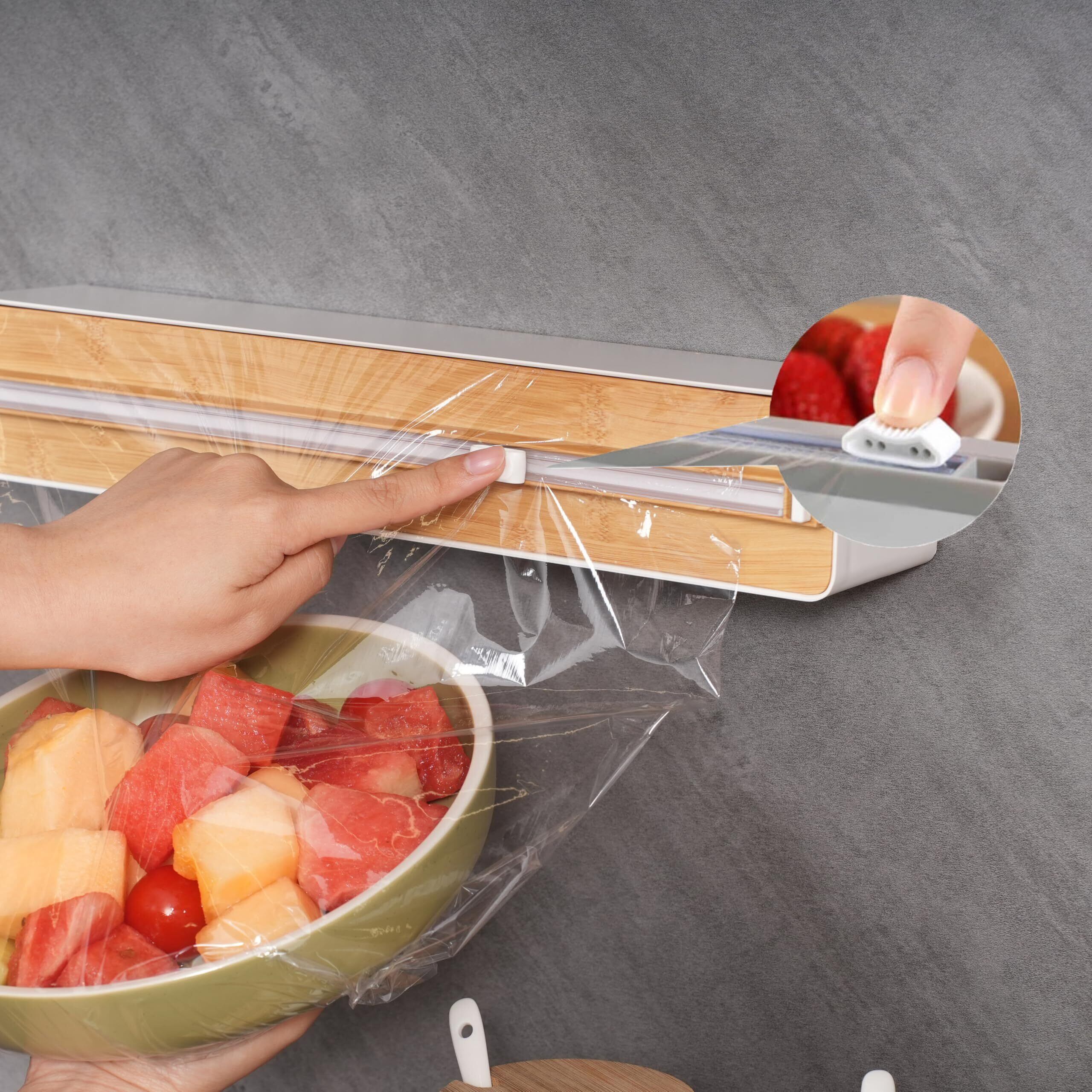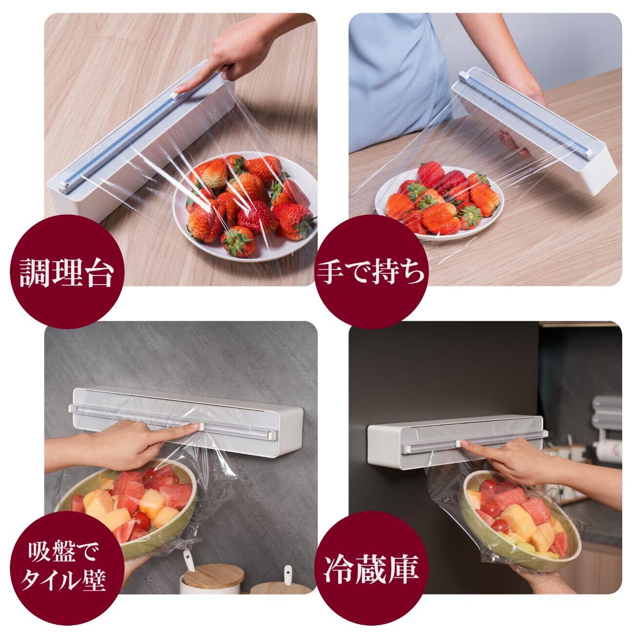【シンプルな外観&多用途に対応】ラップフィルムディスペンサーは、コンパクトで、インテリアに馴染むデザイン。食品をすばやく、お手軽に包むことができます。シンプルながら美しい形状なので、キッチンのインテリアに調和。調理済みの料理をホコリから保護、またスープの漏れを防ぎます。新鮮なお肉ならニオイ移りをブロック。さらに果物や野菜を包むことで水分の蒸発を抑え、より新鮮さを保てます。