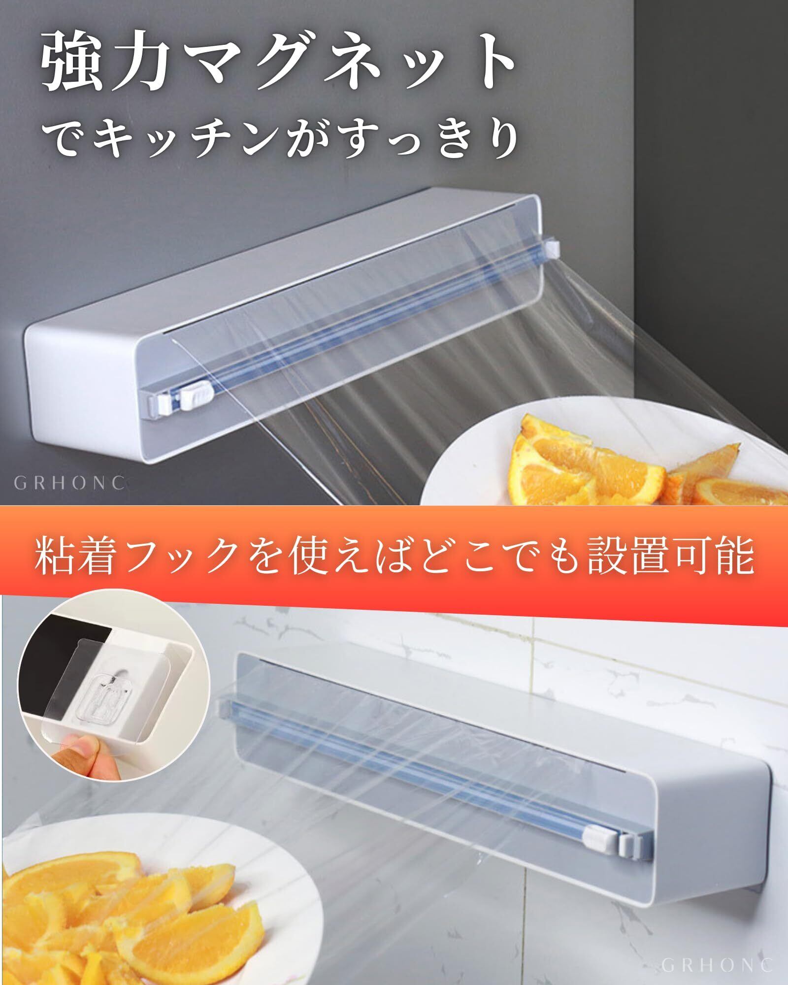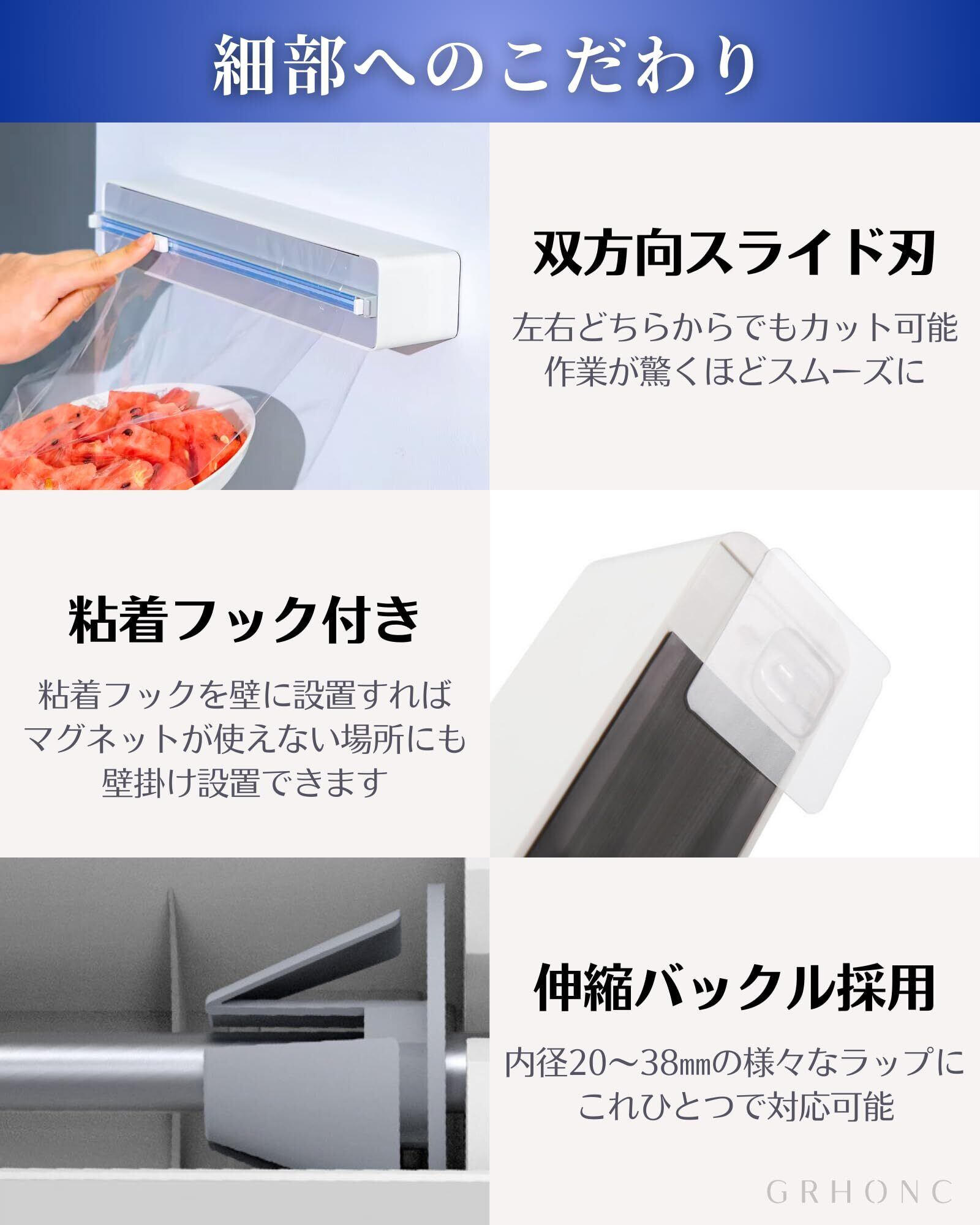 ラップホルダー マグネット ラップカッター スライド 双方向カット 冷蔵庫 壁掛け ラップケース 収納 (グレー)