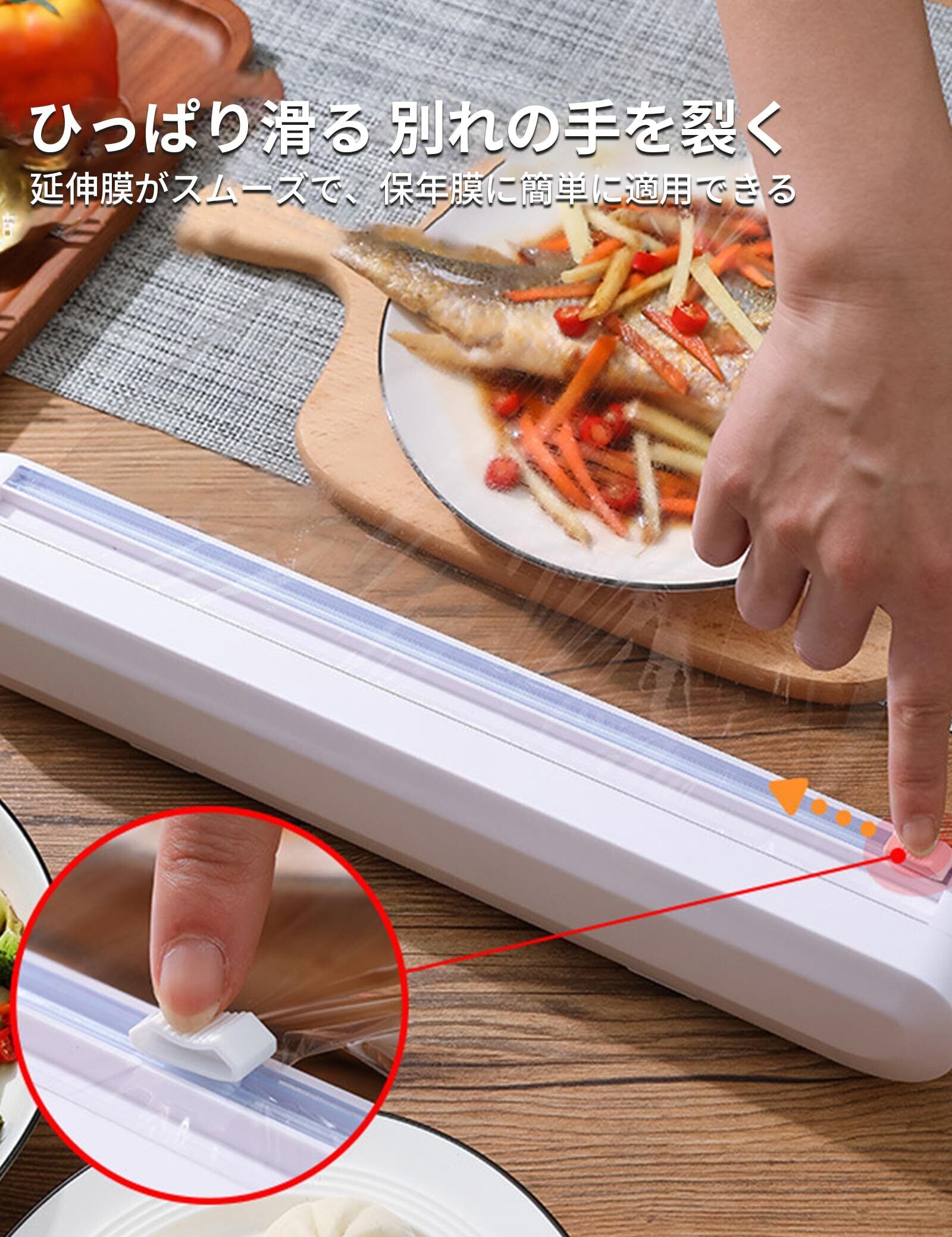 【新着商品】happykau ラップケース ラップカッター カッター付きラップケース スライド カッター付き スライドカッター ラップ 切り取り しがみつくラップ ラップカッター家庭用 収納便利 双方向切断 食品用ラップ 再利用可能な食品ラップカッター