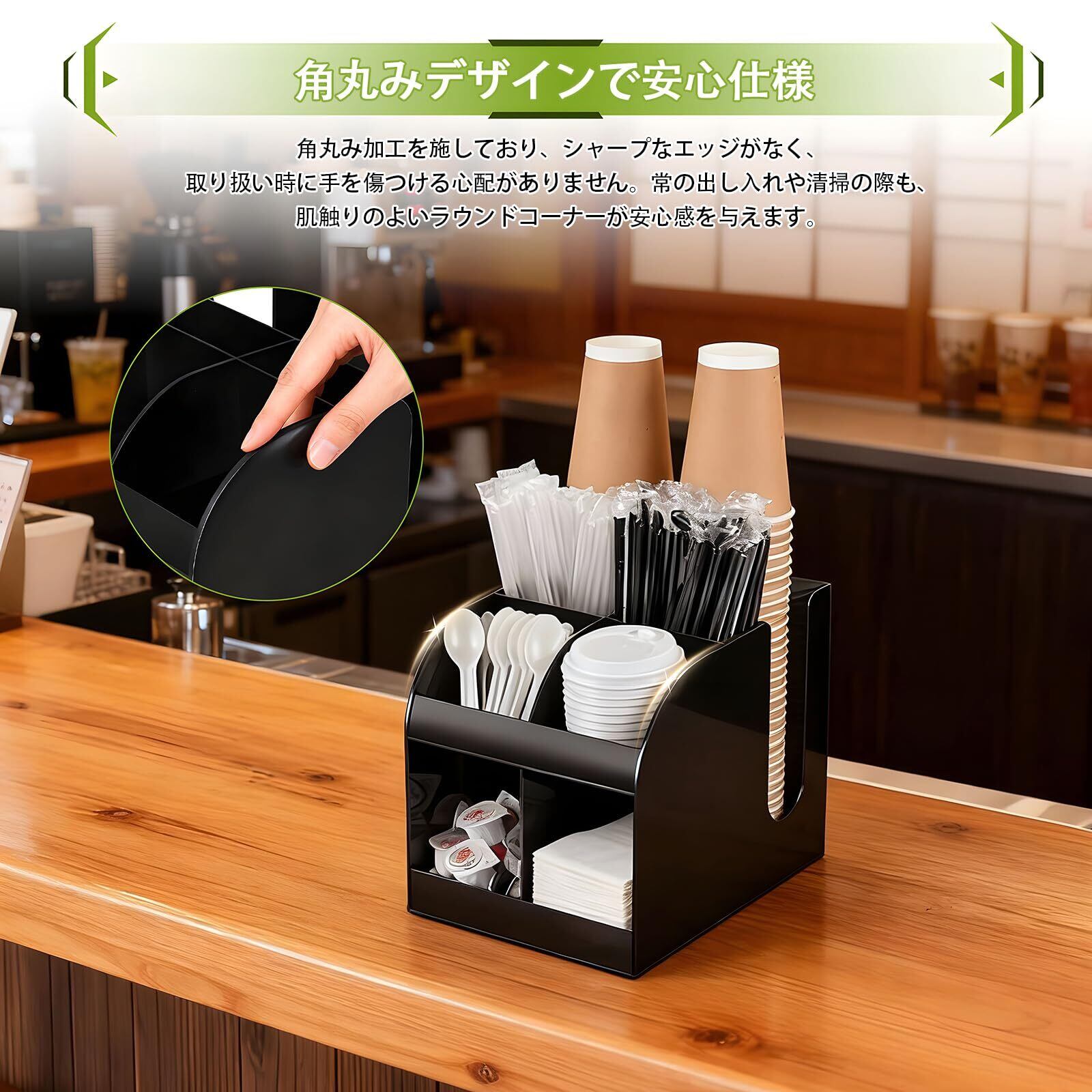 【新春セール】HopeFamily 紙コップホルダー 使い捨てカップディスペンサー カップディスペンサー 2段 8グリッド アクリル製 省スペース 多機能 紙コップ・ストロー・調味料収納 頑丈 丸角デザイン ップスリーブホルダー 自宅 キッチン 喫茶店 コーヒーショップ 業務用(21×28×23.5cm ブラック)