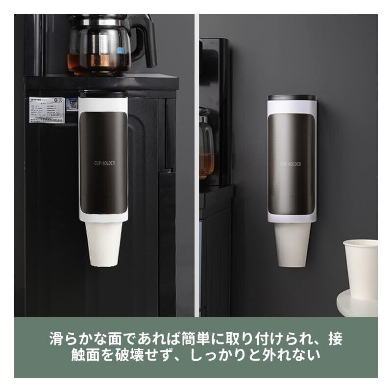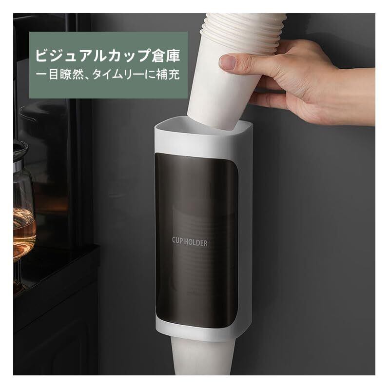 【新着商品】使い捨てカップディスペンサー 壁掛けカップホルダー 紙コップホルダー 40個コップ入れ可能仕様 蓋付 粘着テープ式 ウォーターサーバー横(ホワイト)