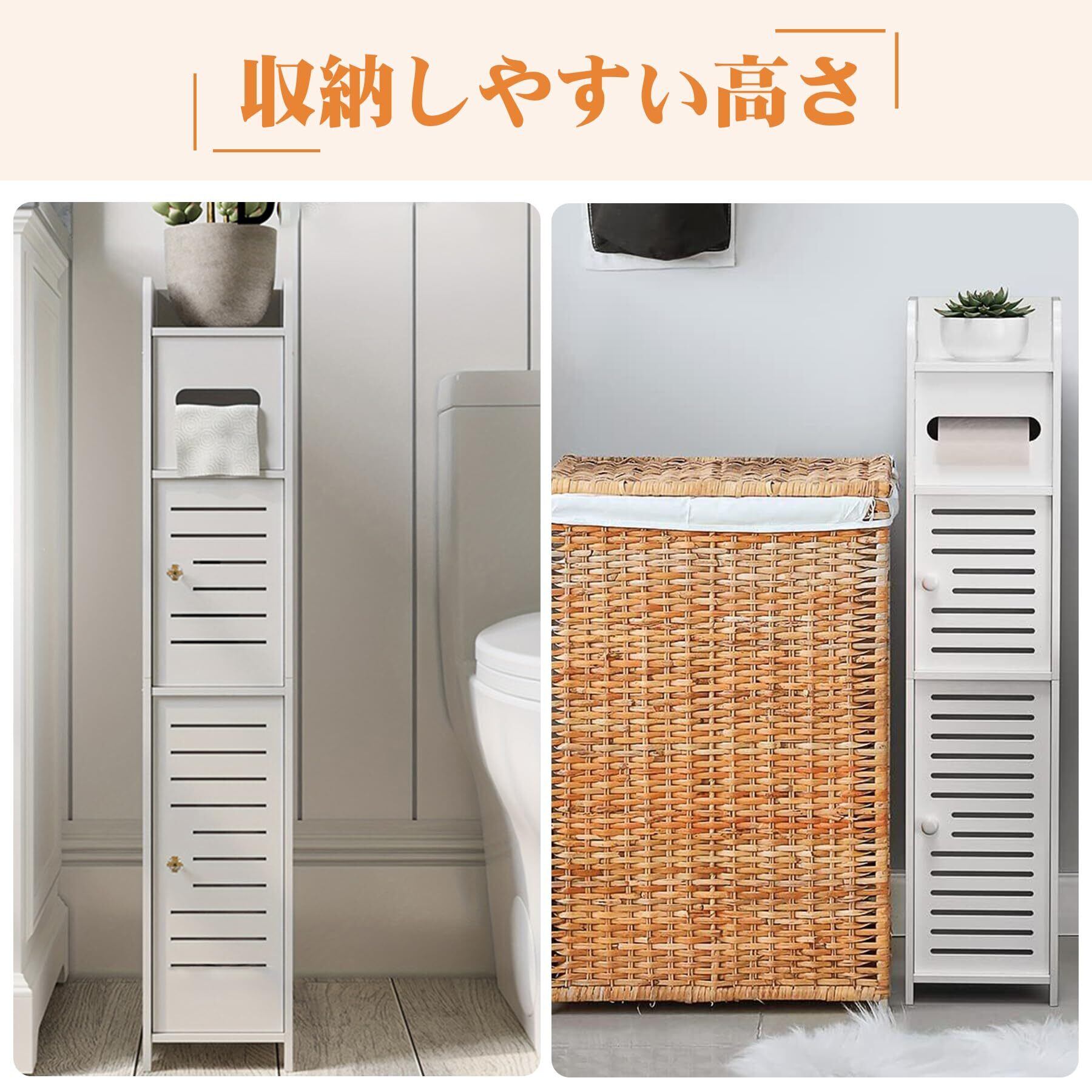 トイレ 収納 隙間収納 スリム 収納 防水 防湿 組立簡単 玄関/洗面所/寝室/書斎 省スペース バスルーム収納棚 (ホワイト, 15*15*80cm(2つのドア))