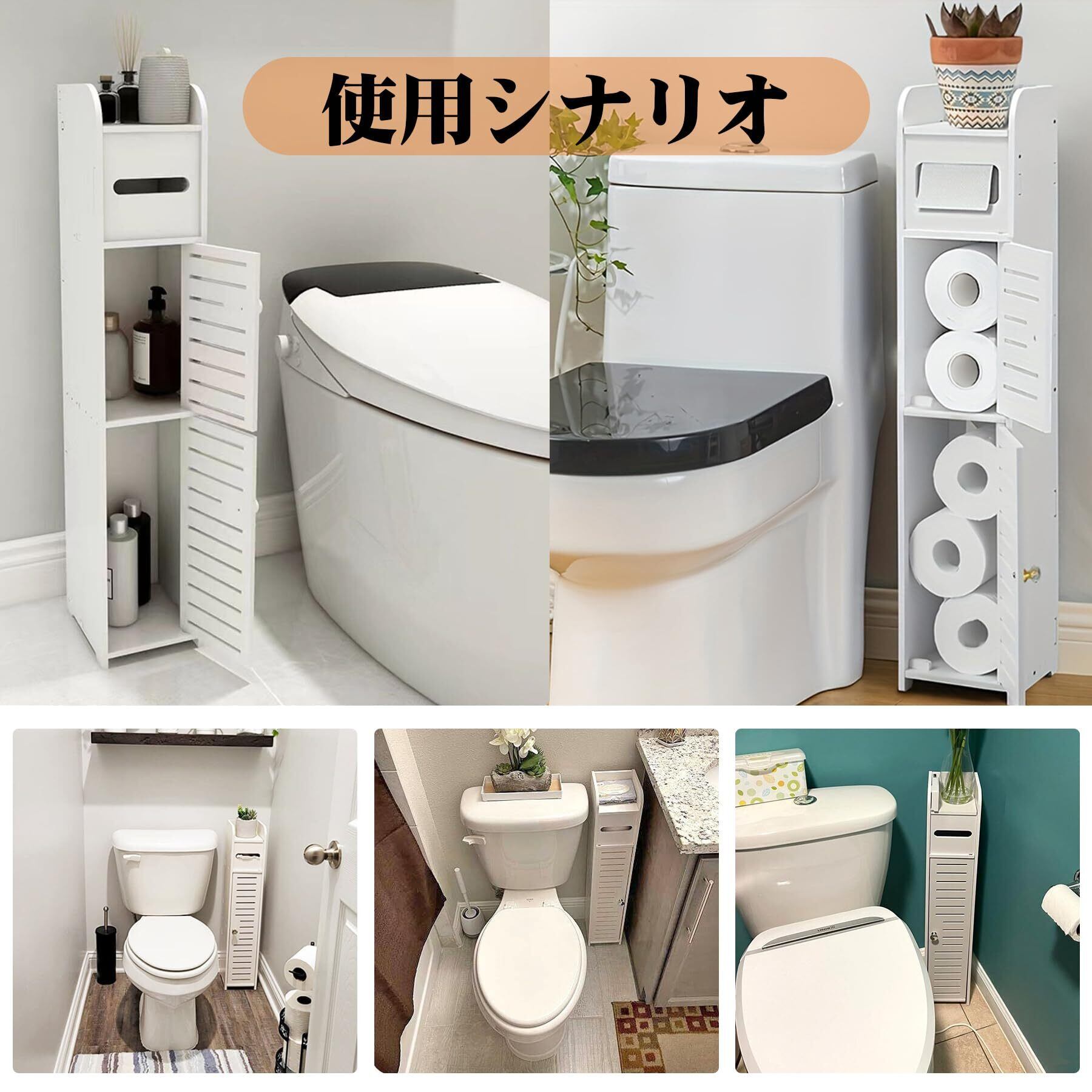 【防水・防湿設計】このトイレ収納ラックは高品質の素材を使用し、優れた防水・防湿性能を備えています。バスルームや浴室などの水回りでも安心して使用でき、お手入れも簡単です。このバスルーム収納キャビネットは、木材とプラスチックの複合素材で作られています。軽量で頑丈、そして耐久性に優れています。優れた防水性能を備え、トイレや浴室に設置できます。シロアリなどの害虫の侵入も効果的に防ぎます。まさに画期的な新素材です。