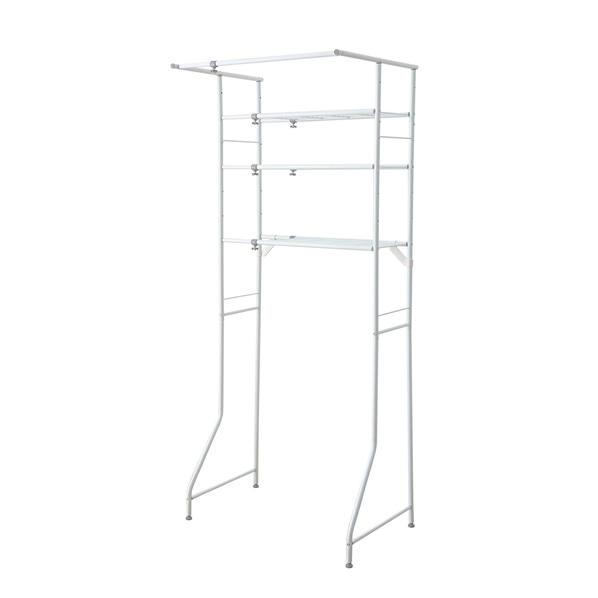 HEIAN SHINDO ランドリーラック 棚3段 ハンガーバー付き 横伸縮 縦型ドラム式両対応 ホワイト 幅60-93×奥行53×高182cm L-5 平安伸銅工業