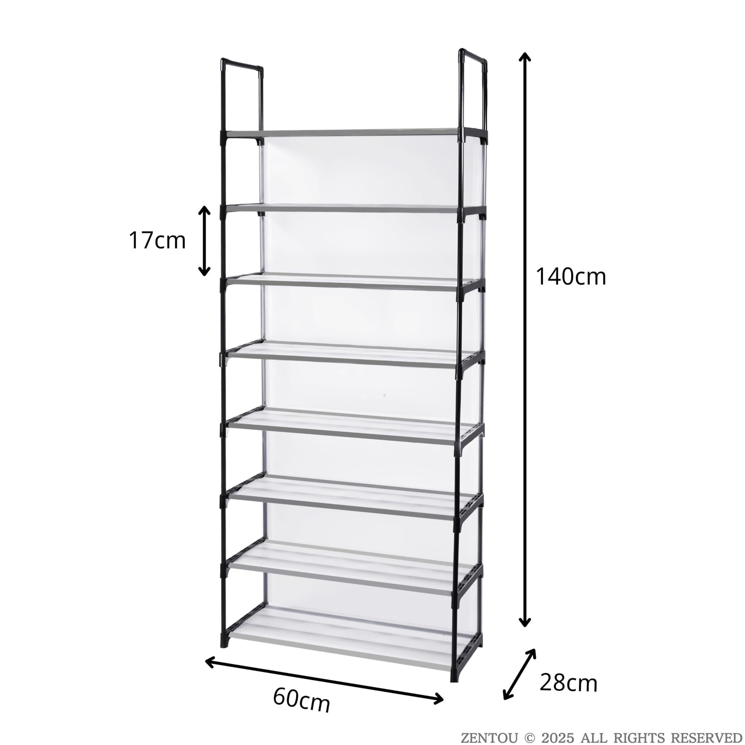 8段ワイド 【新型壁&靴保護機能】 シューズラック スリム 玄関収納 大容量20~24足 靴箱 下駄箱 狭い玄関対応 省スペース 半透明PPシート付き 壁面保護 防汚 防水 組立簡単 手袋付き 幅60×奥行28×高さ140cm ブラック