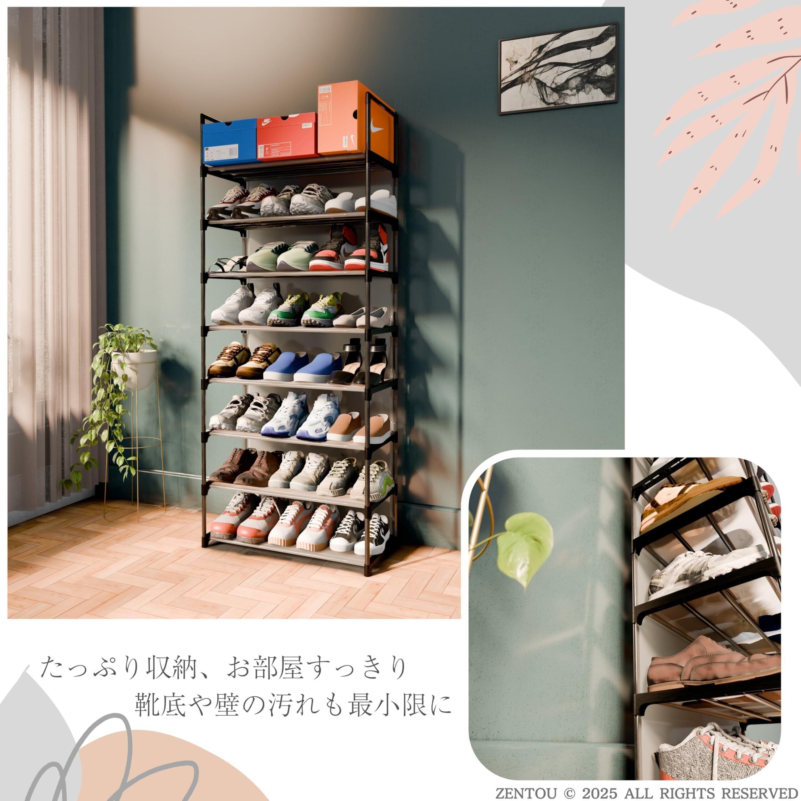 1. 自由に分割・高さ調節可能なシューズラック 本シューズラックは8段構造で、上下自由に分割して、4段+4段などお好みに合わせて使い分けが可能なシューズラック スリムです。中段のスチールパイプを取り外すことで、ブーツやハイカットシューズ、スニーカー収納、長靴収納、靴 ラック スリム、玄関靴箱、シューズ収納としても使えます。限られた空間でも玄関収納や靴しゅうのう、子供用シューズラックとして最適で、シューズ キャビネット、シューズ ラック おしゃれ、靴箱 収納、靴ラック 大容量としても活躍します。