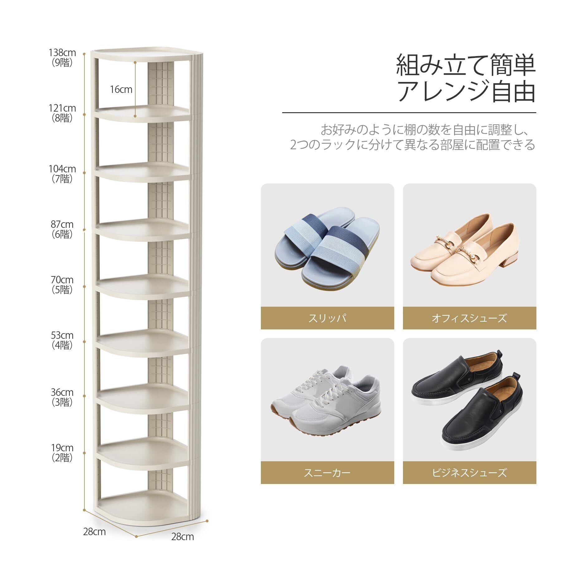 シューズラック スリム 靴収納ラック 靴箱 靴置き棚 スリッパラック 下駄箱 靴入れ 玄関収納 縦型 省スペース おしゃれ 組み立て式 分割可能 (9段)