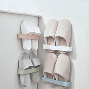 スリッパラック 2個セット 壁掛け式 穴開け不要 粘着式 スリッパ置き サンダル収納 スリッパ掛け 壁面に傷つかない 浴室用スリッパラック 省スペース 玄関 浴室収納 ホワイト+ブルー