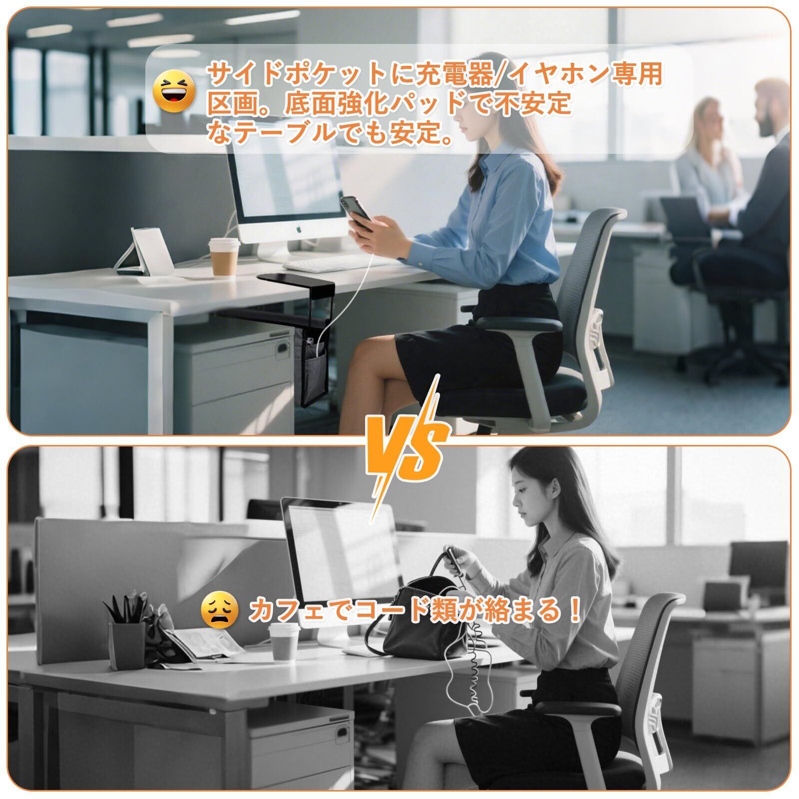 【簡単設置】 デスク端に引っ掛けるだけで即設置可能。滑り止め・防錆加工で安定性抜群。賃貸住宅でもデスクを傷つけず、生活環境の変化(引越し・転職)にも柔軟対応。