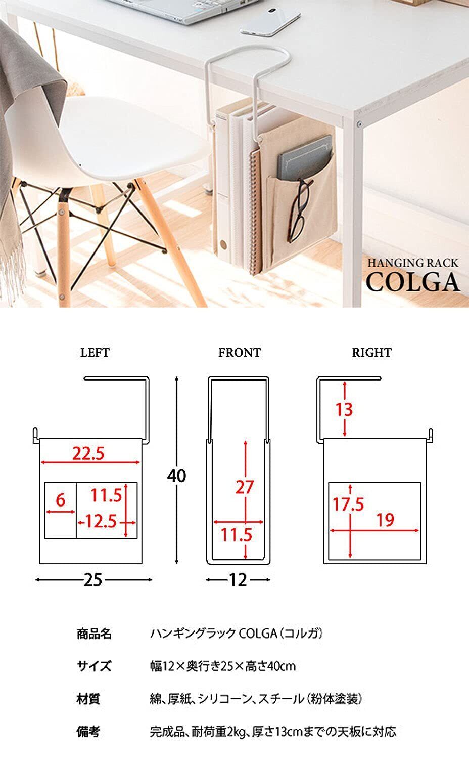 備考:完成品、耐荷重2kg、厚さ13cmまでの天板に対応