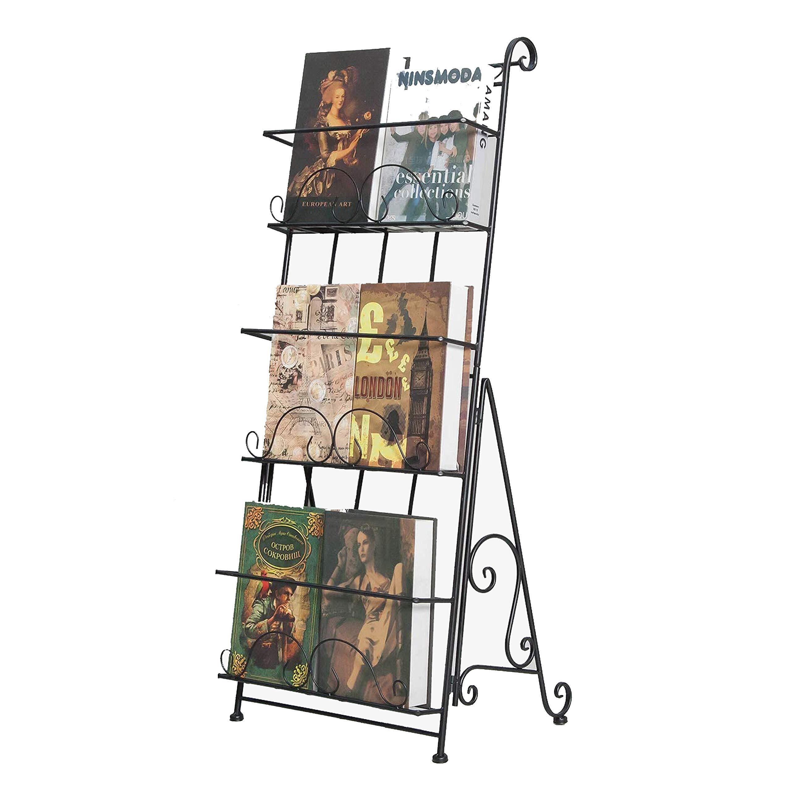 BQKOZFIN パンフレットスタンド 3段 マガジンスタンド カタログスタンド 約幅40×奥行35×高さ103cm 大容量 スチール製 待合室 学校 図書館用 ブラック 北欧 おしゃれ