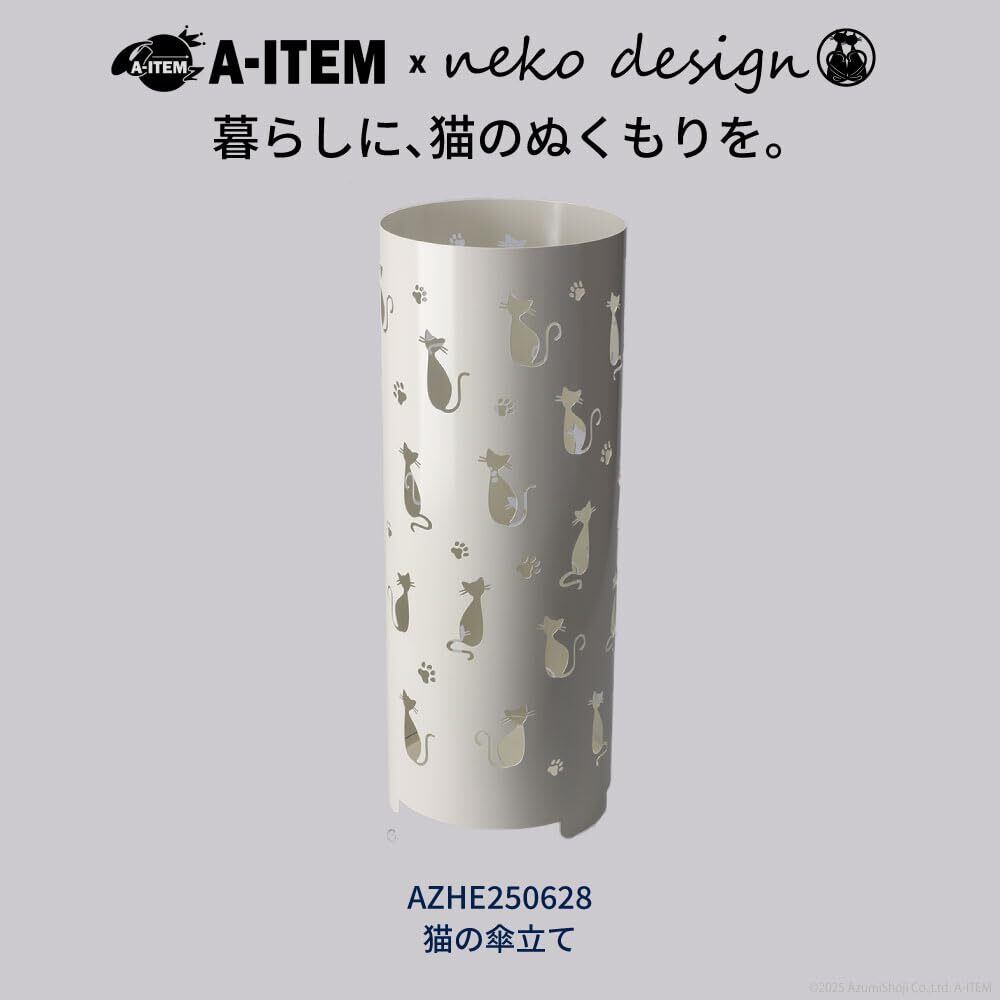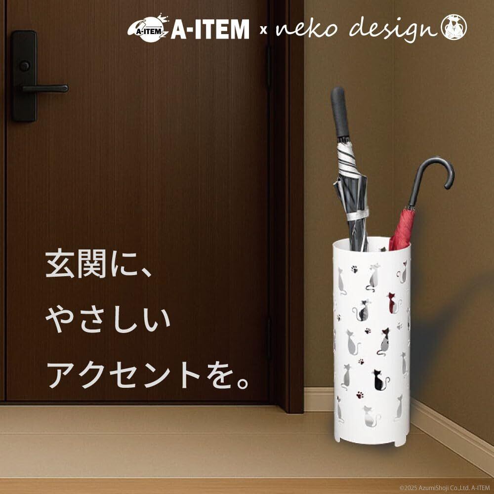 A-ITEM × neko design 猫柄 スリム 傘立て (ホワイト)