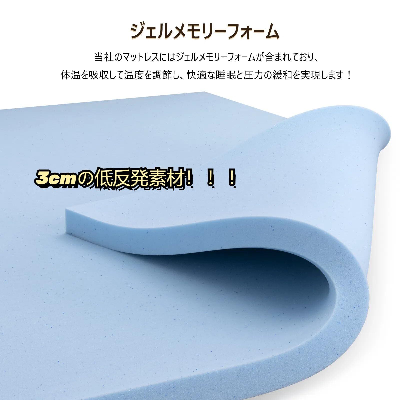 2層構造で快適な寝心地: 上層に柔らかい低反発メモリーフォーム、下層に高密度ポリウレタンフォームを使用し、体圧を分散しながらしっかりと支えます。やわらかめの感触でありながら、腰や背中をしっかりサポートする設計で、疲れを残しにくい睡眠を実現します。