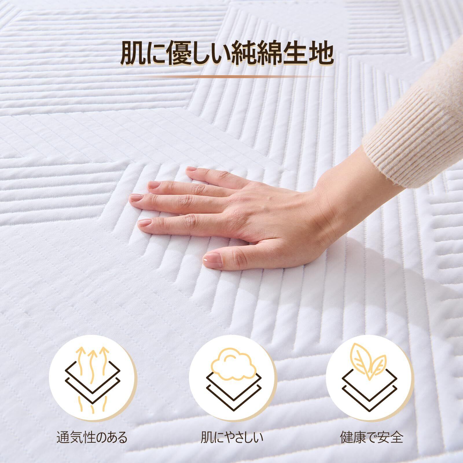 綿の通気性カバー: マットレスのカバーは綿100%を使用し、やわらかく肌触りが良く、通気性に優れています。湿気を逃がすことで、常に清潔で快適な睡眠環境を提供します。