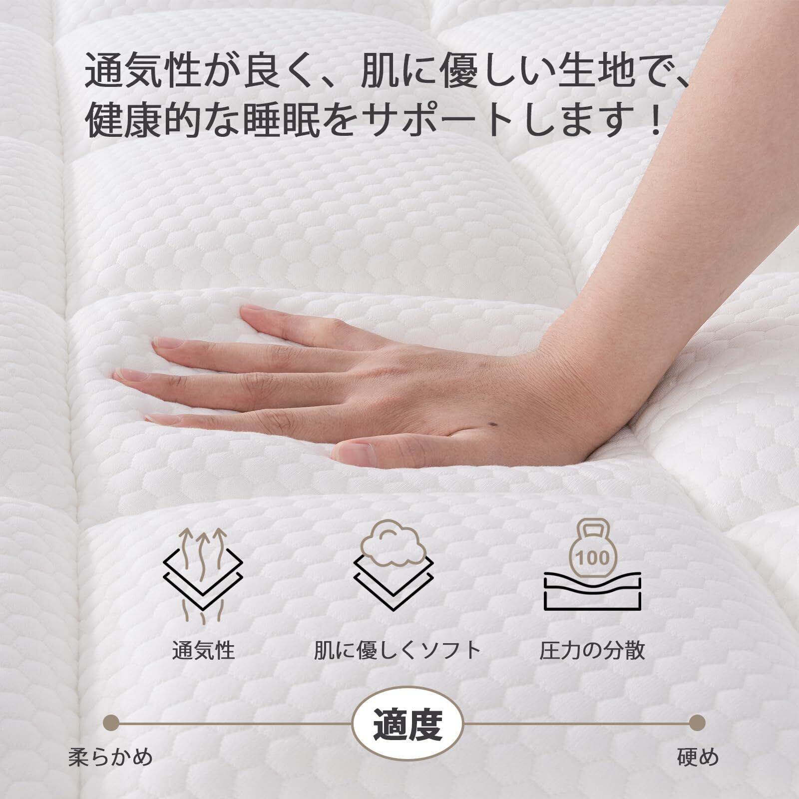 静かな眠り: スプリングはそれぞれ不織布で包まれており、従来のサポートインナーコイルスプリングに比べ、独立したポケットスプリングは安定感があり、左右に揺れにくく、寝返りをうっても隣の人に伝わりにくいので、より熟睡できます。
