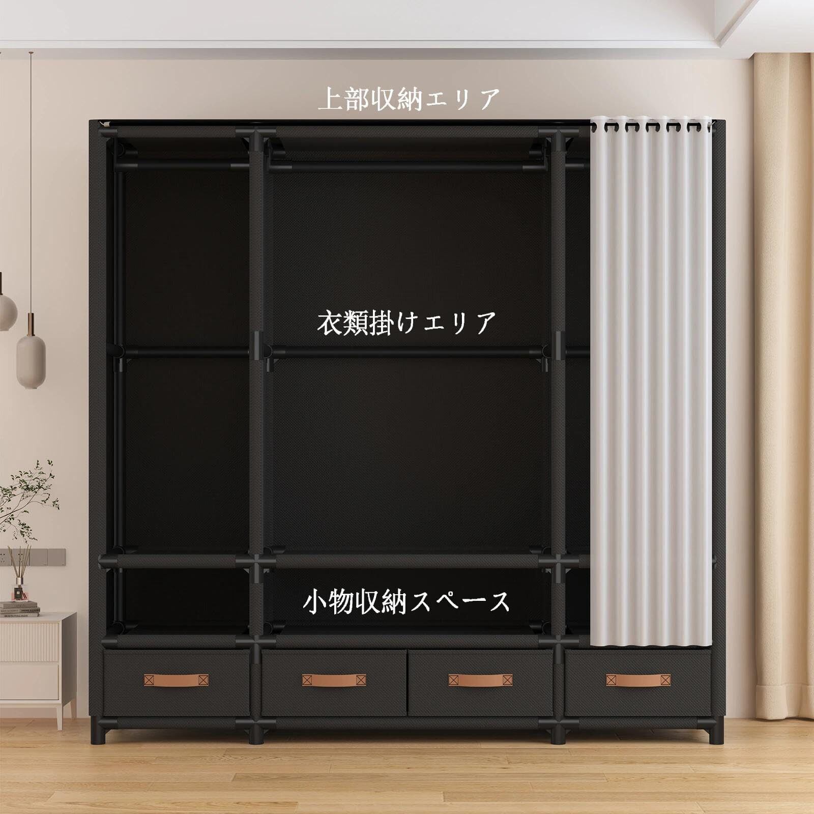 【簡単組み立てクローゼット】 ドライバー不要の設計で、誰でも簡単に組立可能な簡易クローゼット。寝室でもスムーズに設置できるワードローブ clothes cabinetです