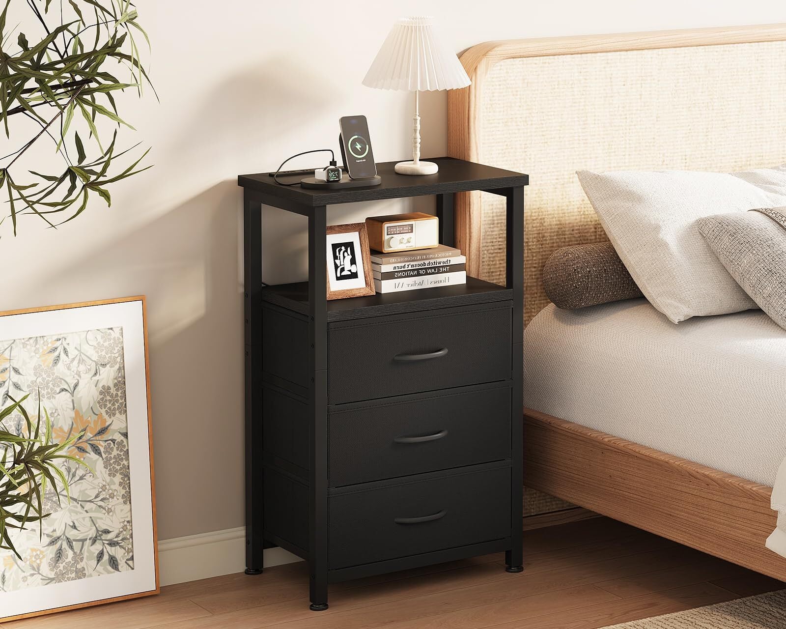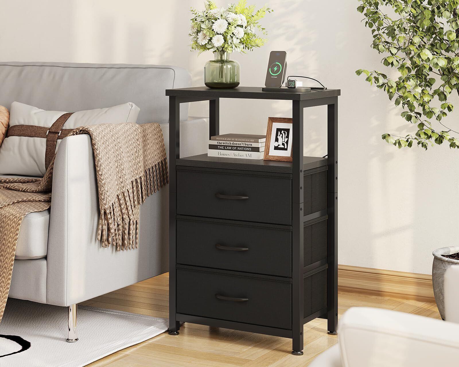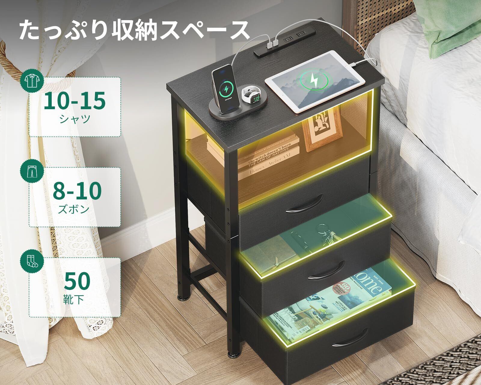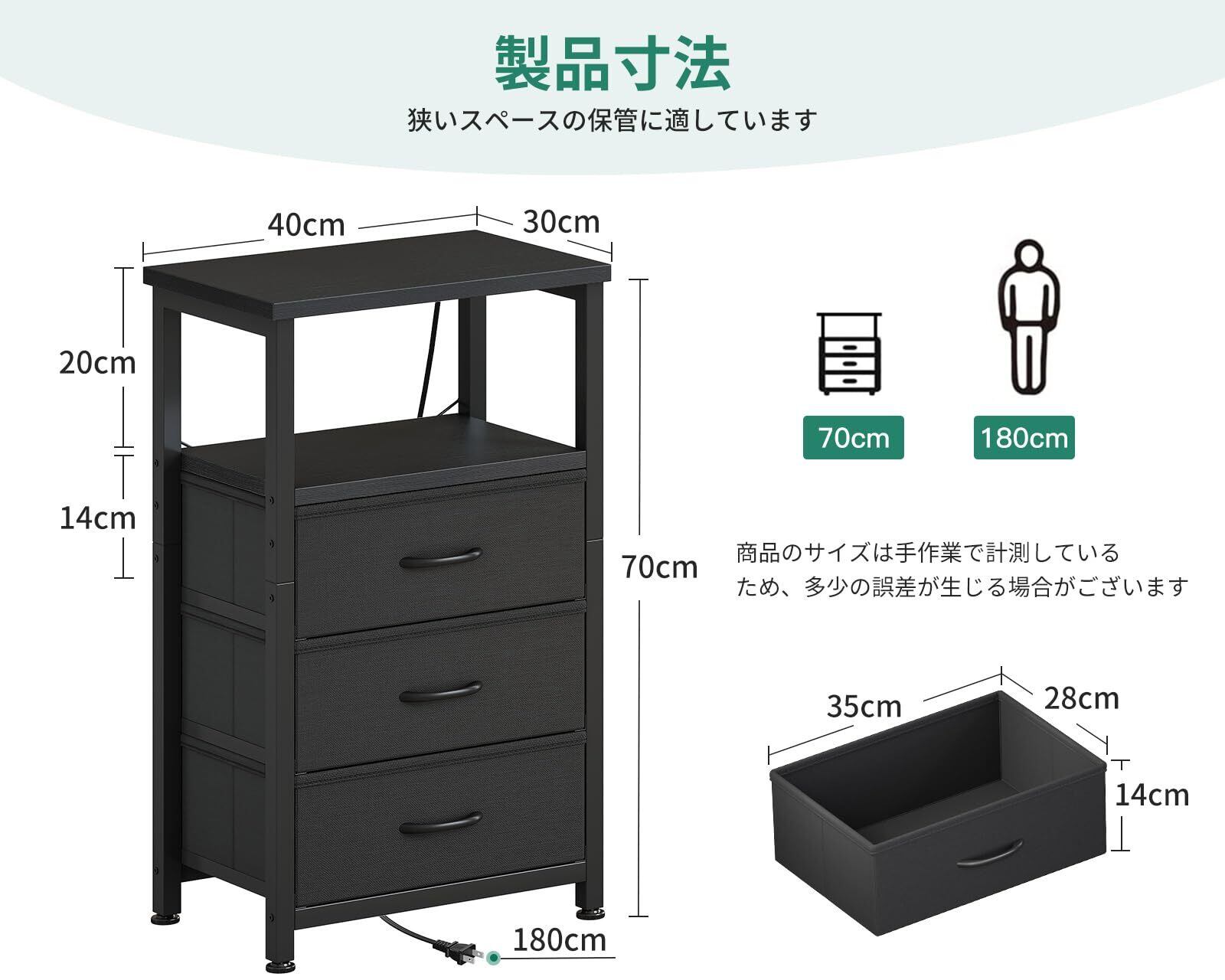 AODK サイドテーブル ナイトテーブル ベッドサイドテーブル コンセント付き 40×30×70cm 引き出し付き 収納付き ベッド横 (ブラック)