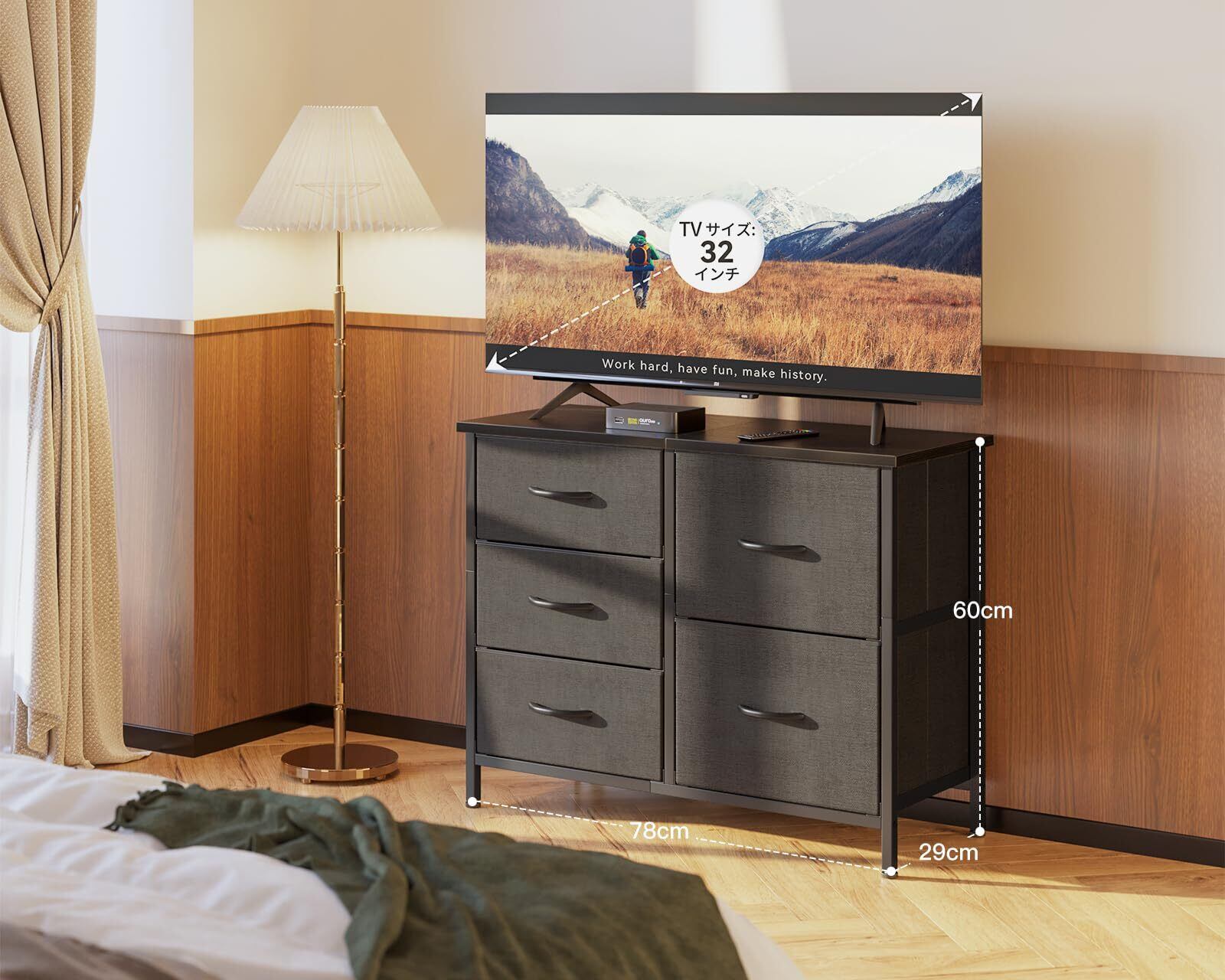 AODK チェスト タンス 収納チェスト 引き出し 3段棚 キャビネット リビング収納 収納ケース 衣装ケース 木製 おしゃれ 大容量 収納棚 脱衣所 衣類収納 転倒防止 安定感 3段5杯(L78×W29×H60cm,ブラック)