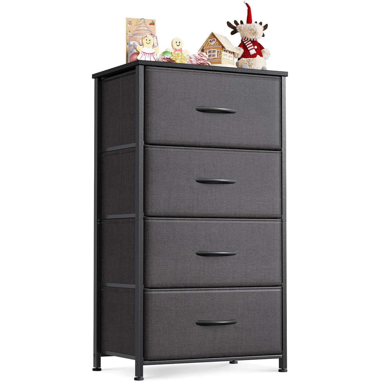 KKL チェスト タンス 衣類収納 収納ケース 引き出し リビング収納 布製 引き出し 衣装ケース 箪笥 転倒防止 低ホルム 安定感 4段 【幅40×奥行30×高さ80cm】 ダークグレー