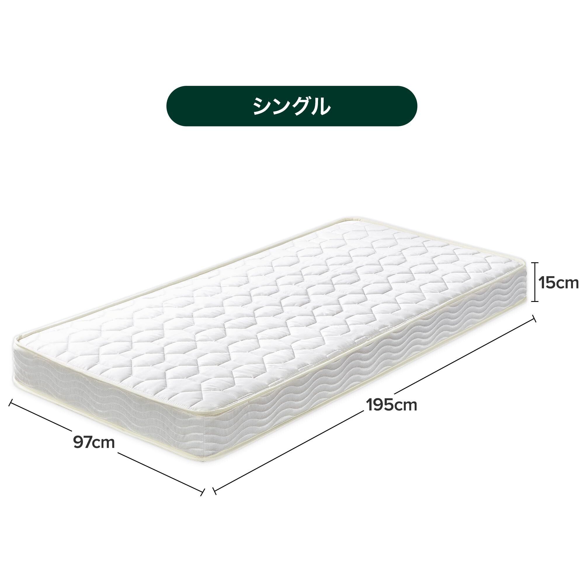 材料:コイルスプリング(ウレタンフォーム、ポリエステル繊維) 側生地:表地/ポリエステル100%、裏地/ポリプロピレン100% 構造:一体式 マットレスの種類:ボンネルコイル