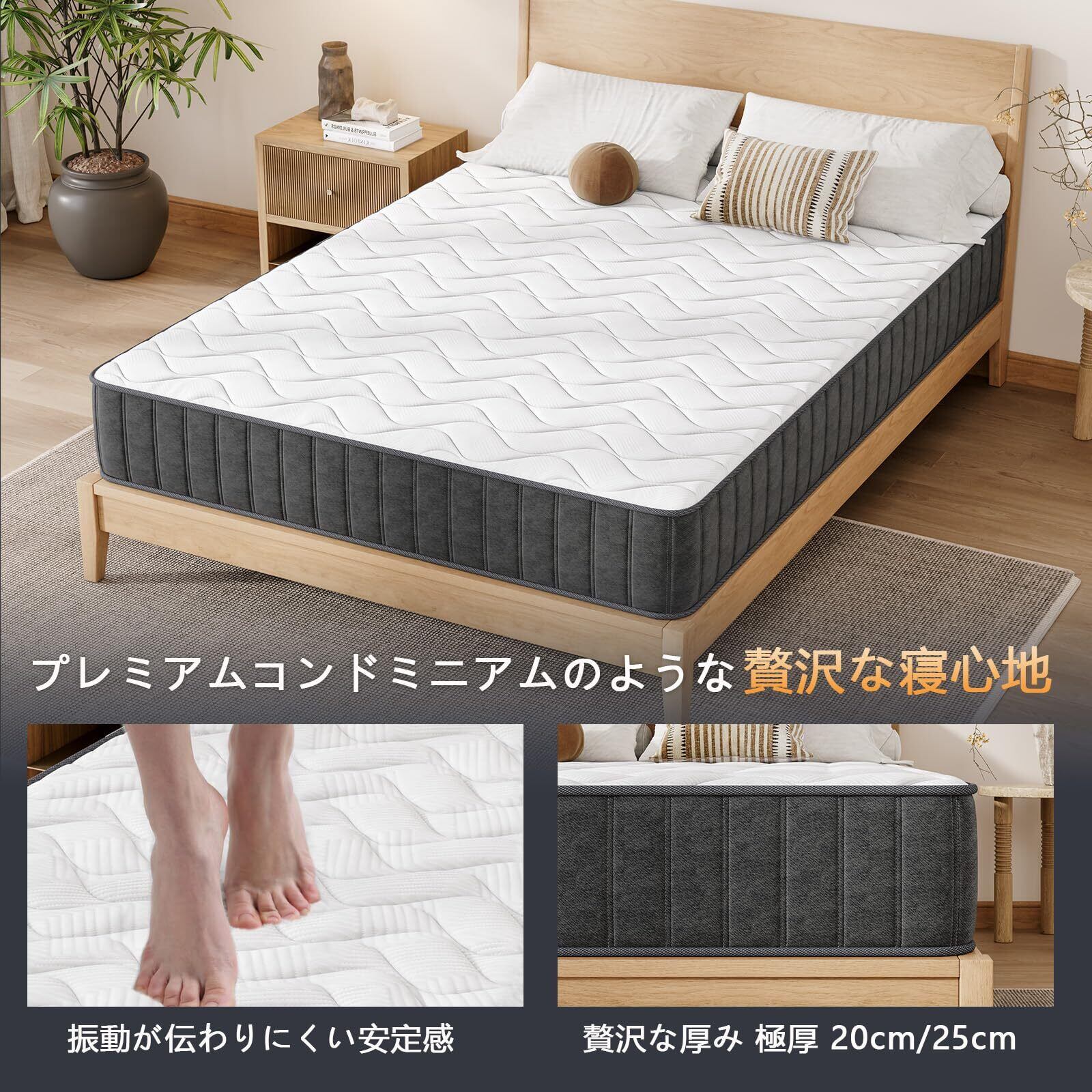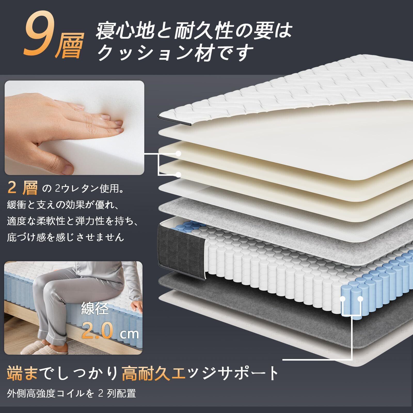 【日本専用設計!高密度ポケットコイルマットレス】日本ユーザーのために特別に設計された『429個』高弾性独立袋装コイルマットレス。反発力・耐久性・強度に優れた独立コイルを採用し、体のラインにフィットして体圧を均一に分散。適度な硬さで腰や肩をしっかりサポートし、無理のない自然な姿勢で朝まで快適に眠れます。朝の目覚めもスッキリ。適度な硬さと快適さを兼ね備えたマットレスをお探しの方に最適です