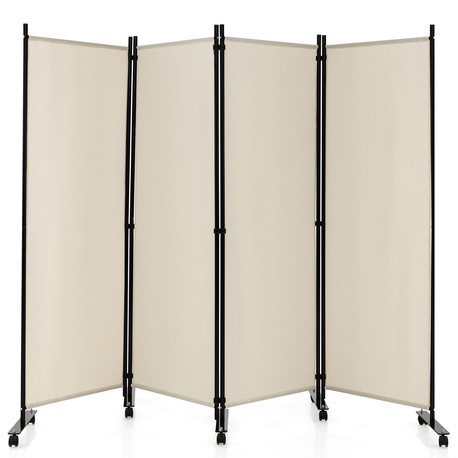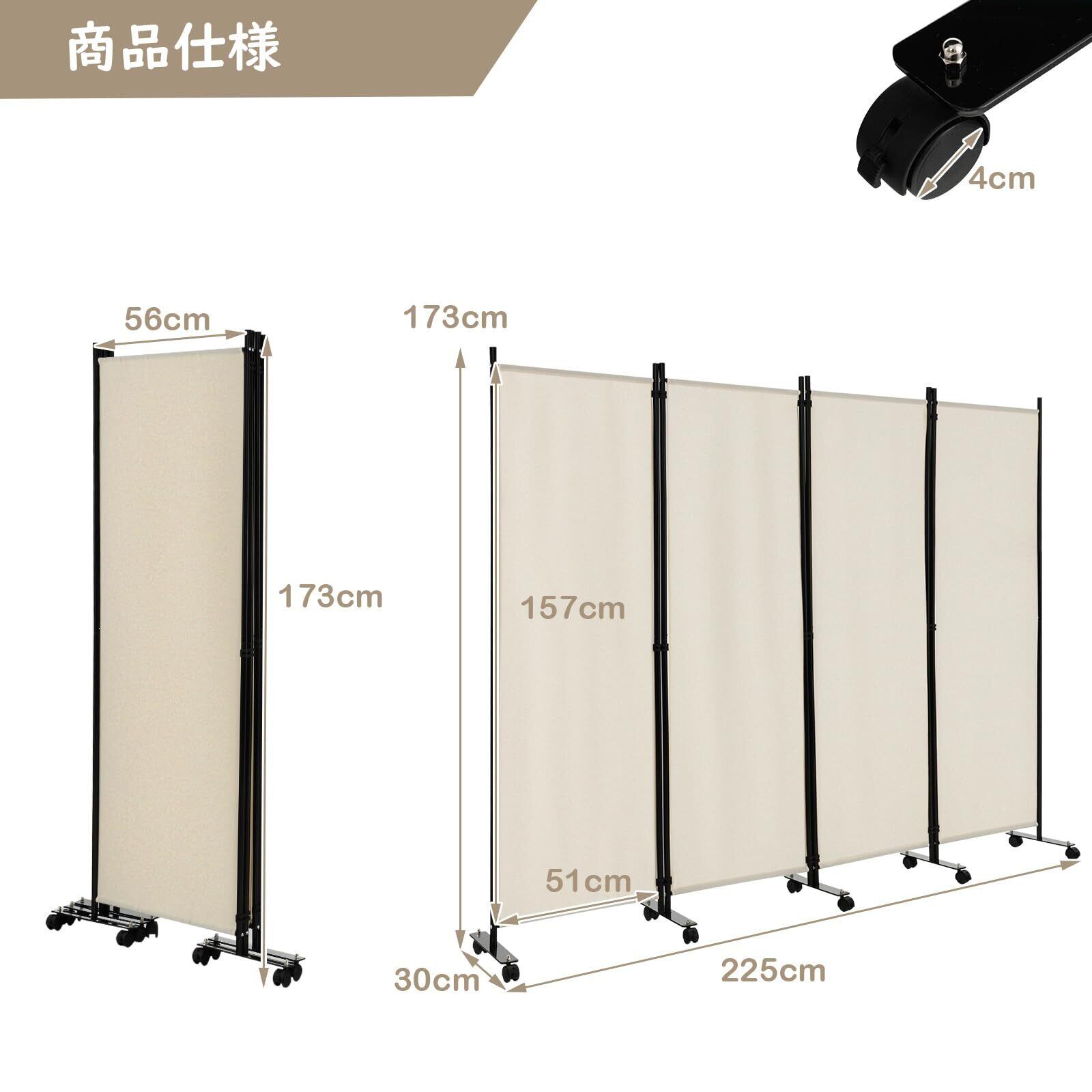 COSTWAY 間仕切り パーテーション 4連 キャスター付き 折りたたみ 高さ173cm 幅225cm 布タイプ 屏風 スクリーン 目隠し 衝立 おしゃれ オフィス 事務所 クリニック