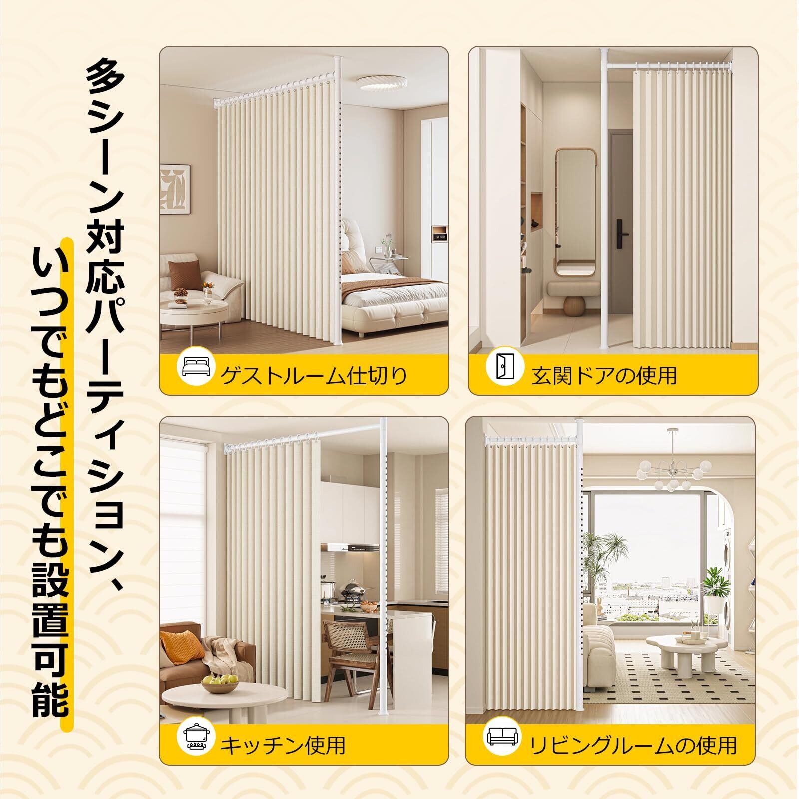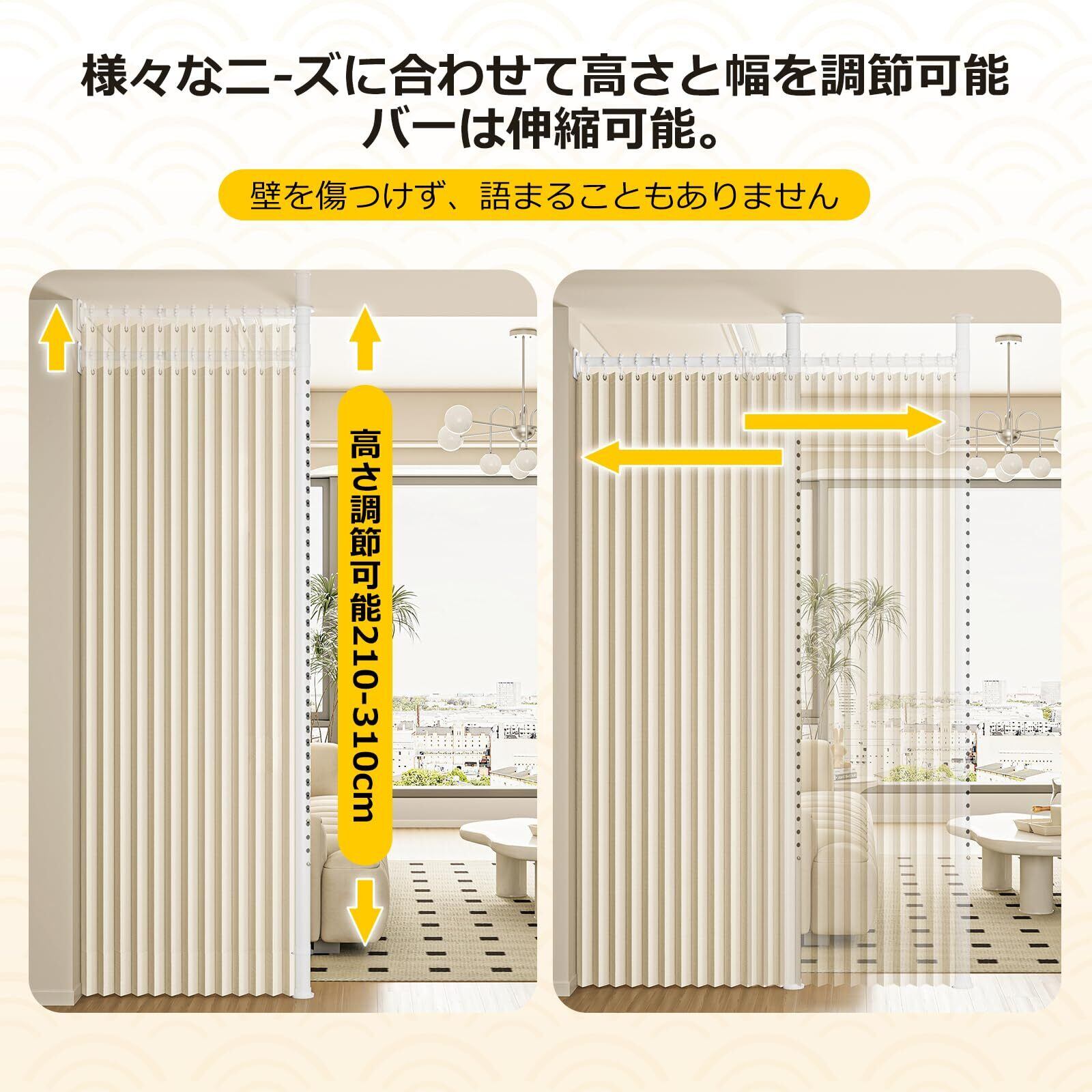 つっぱり式 間仕切り 突っ張りパーテーション自立式 部屋の間仕切り壁 非破壊設置 ドリル不要工具不要 調節可能 幅70cm~310cm 高さ2.1m~3.1mカーテンリングとミニフック付き