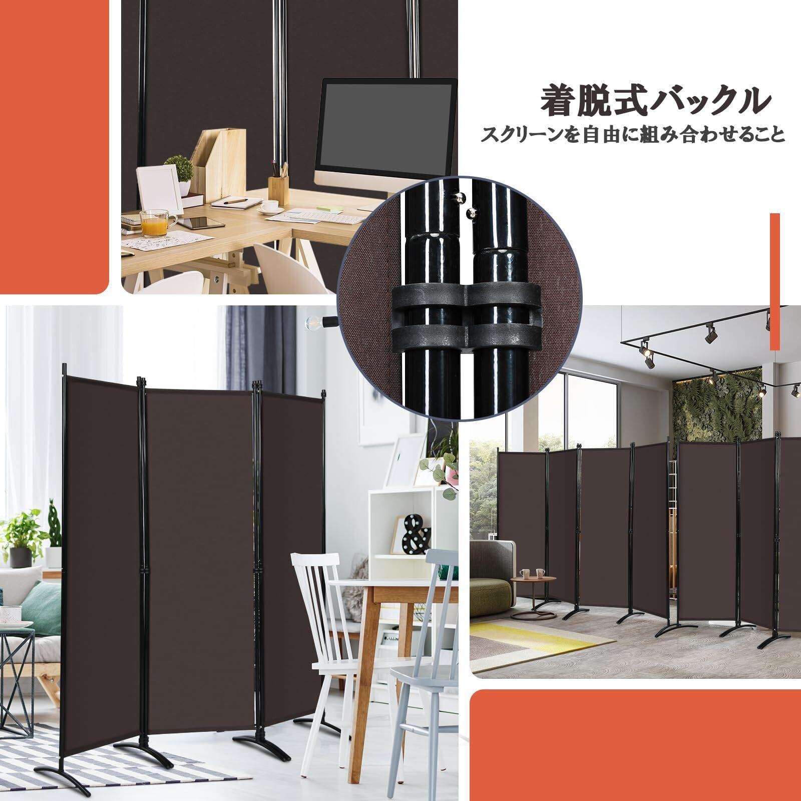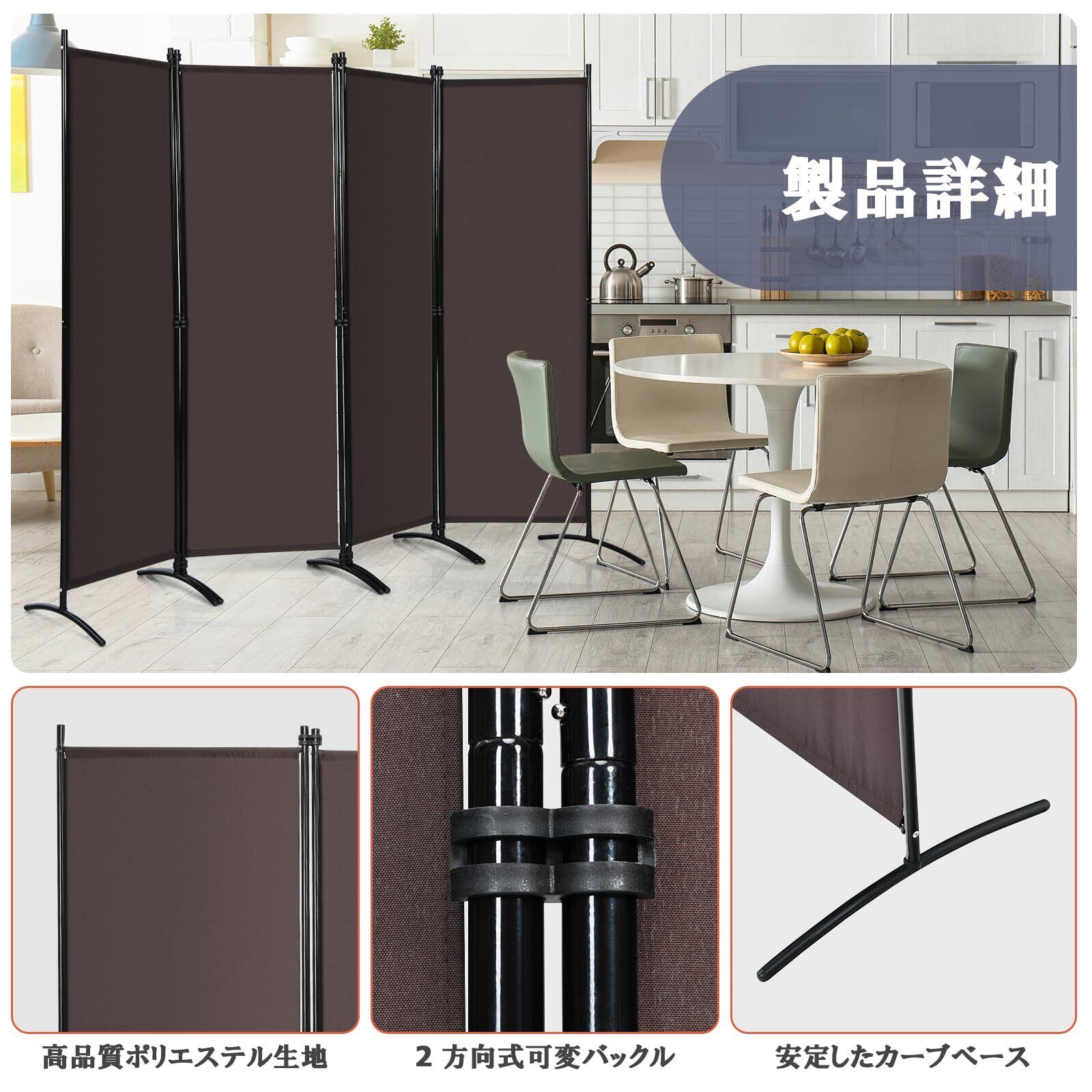 TANGKULA パーテーション 4連 間仕切り 折りたたみ 高さ173cm 幅220cm 布タイプ 目隠し スクリーン 屏風 衝立 軽量 コンパクト収納 オフィス 事務所 (茶色)