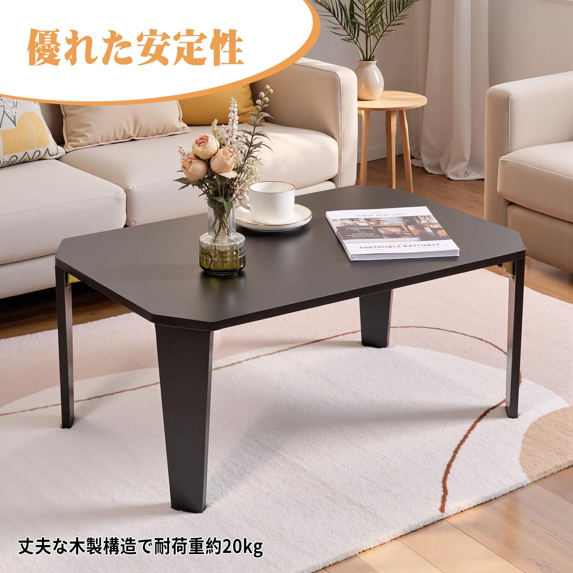VECELO ローテーブル 幅75×奥行50×高さ33cm ブラック コンパクト 一人暮らし
