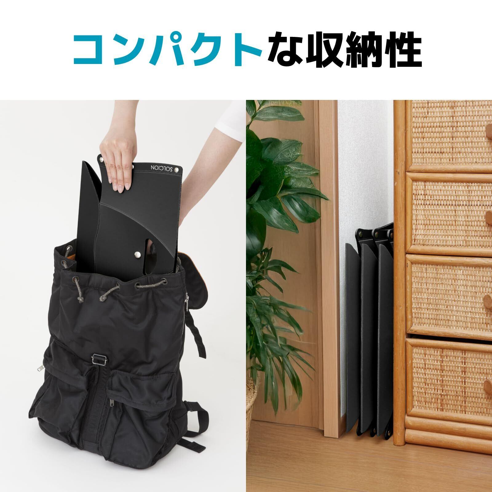 畳むと薄さ約3cm・軽量約290g。バッグにも入るコンパクト設計で、持ち運び楽々。