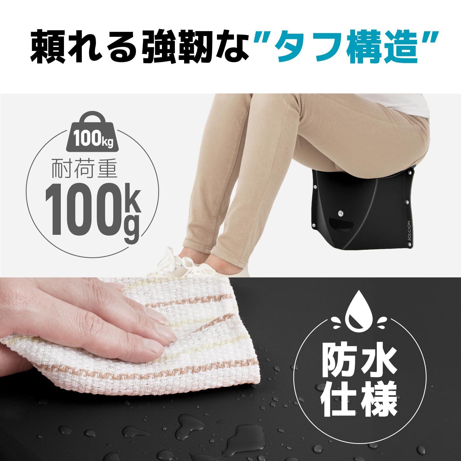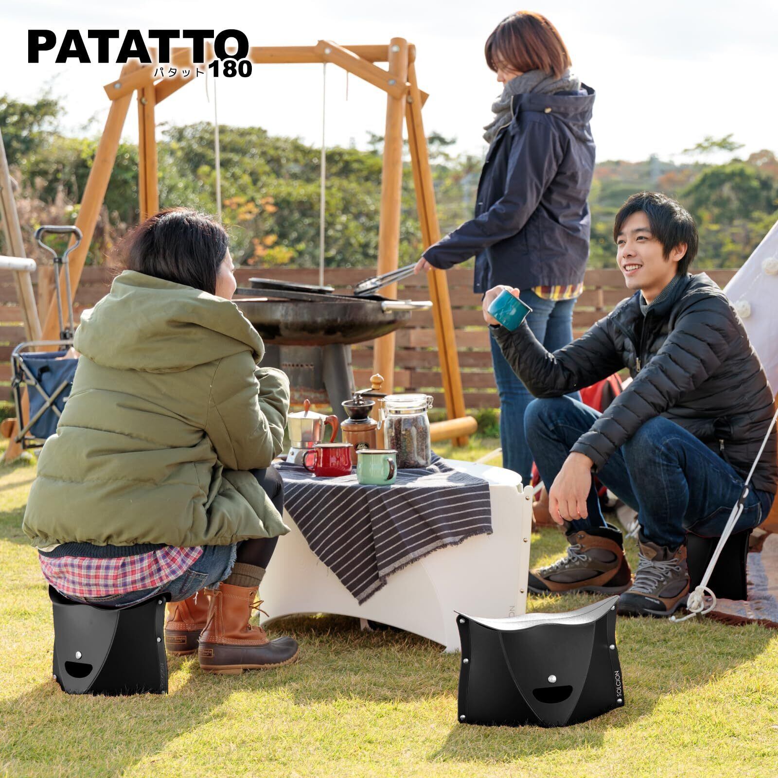 【SOLCION公式】折りたたみイス PATATTOシリーズ (180ブラック, 高さ18cm)軽量 コンパクト どこでも持ち運び アウトドア 約290g 【耐荷重100kg】PT1805