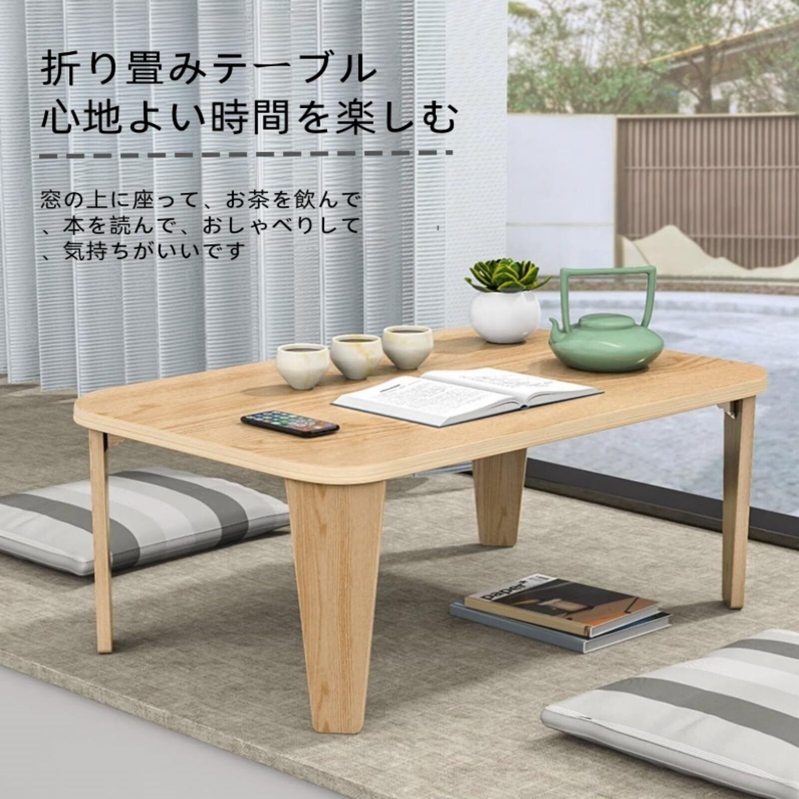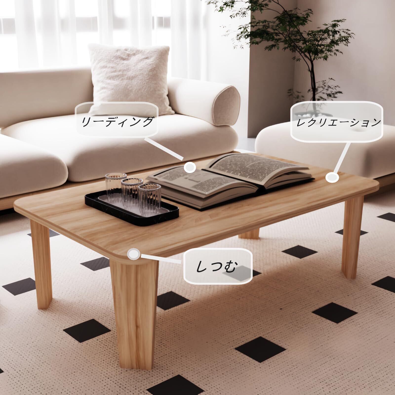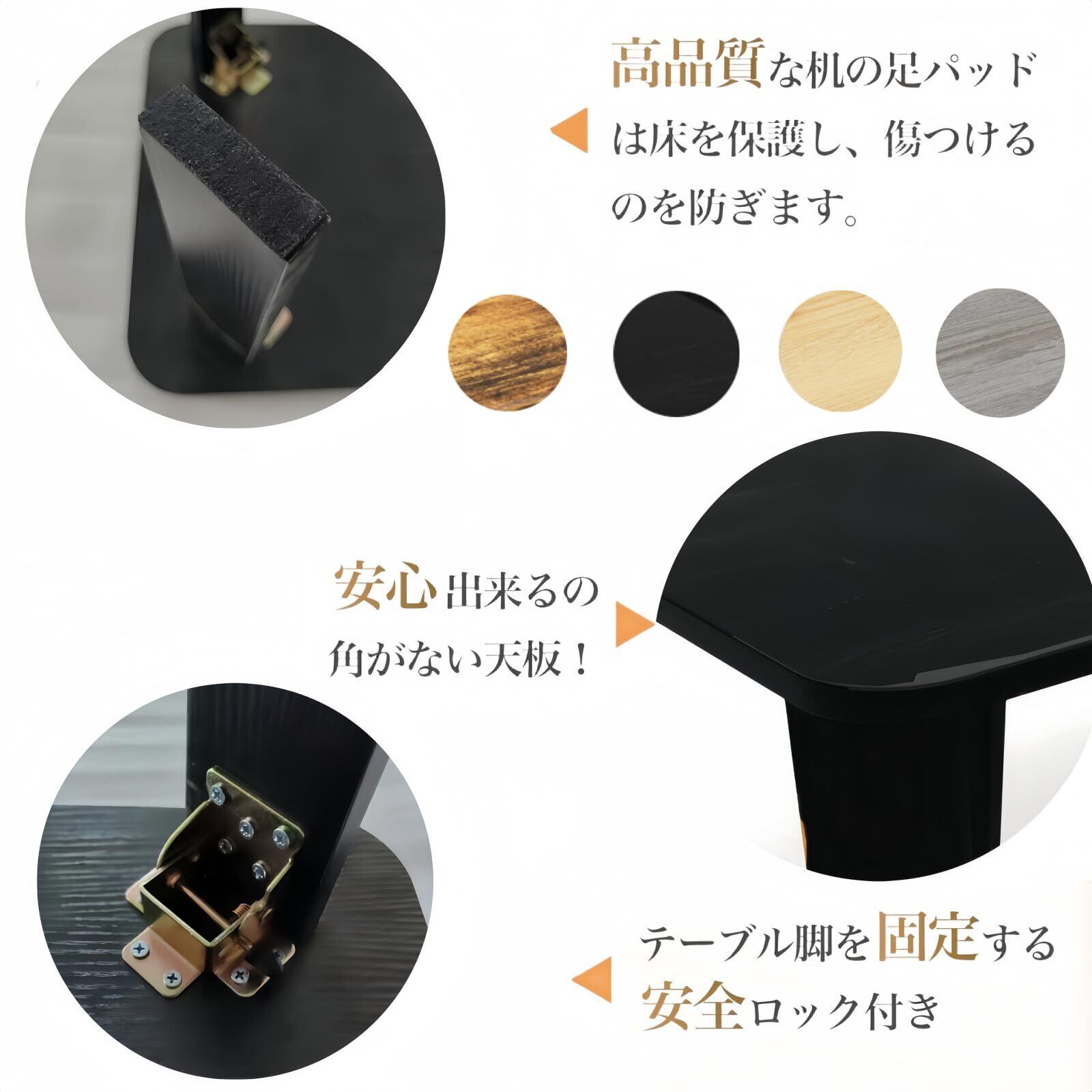 & 角に丸みをもたせた面取り加工を施すことで、小さなお子様やペットのいるお家でも安 心!折畳テーブル脚の裏にはクッションシール素材を使用するので、滑り止め効果と床への傷付きを防止します。