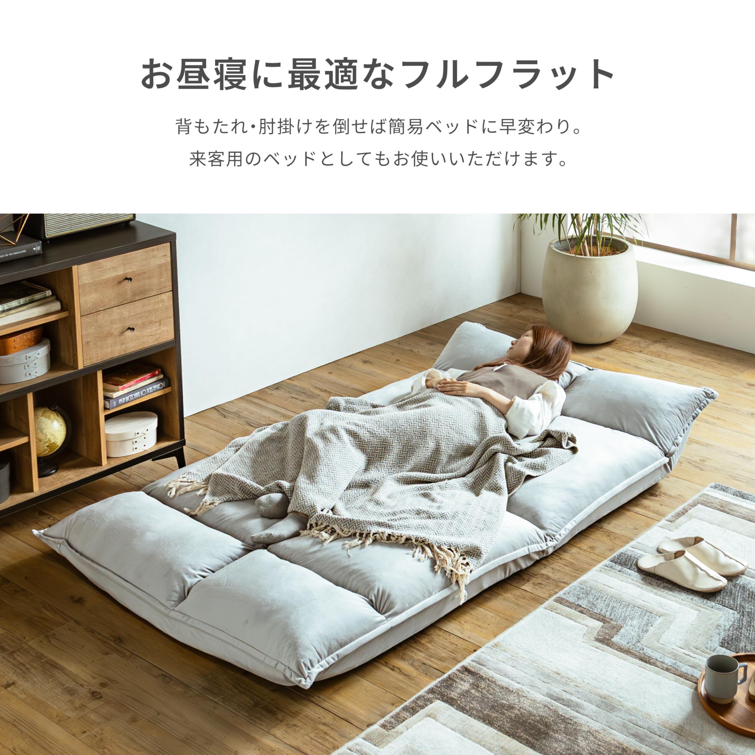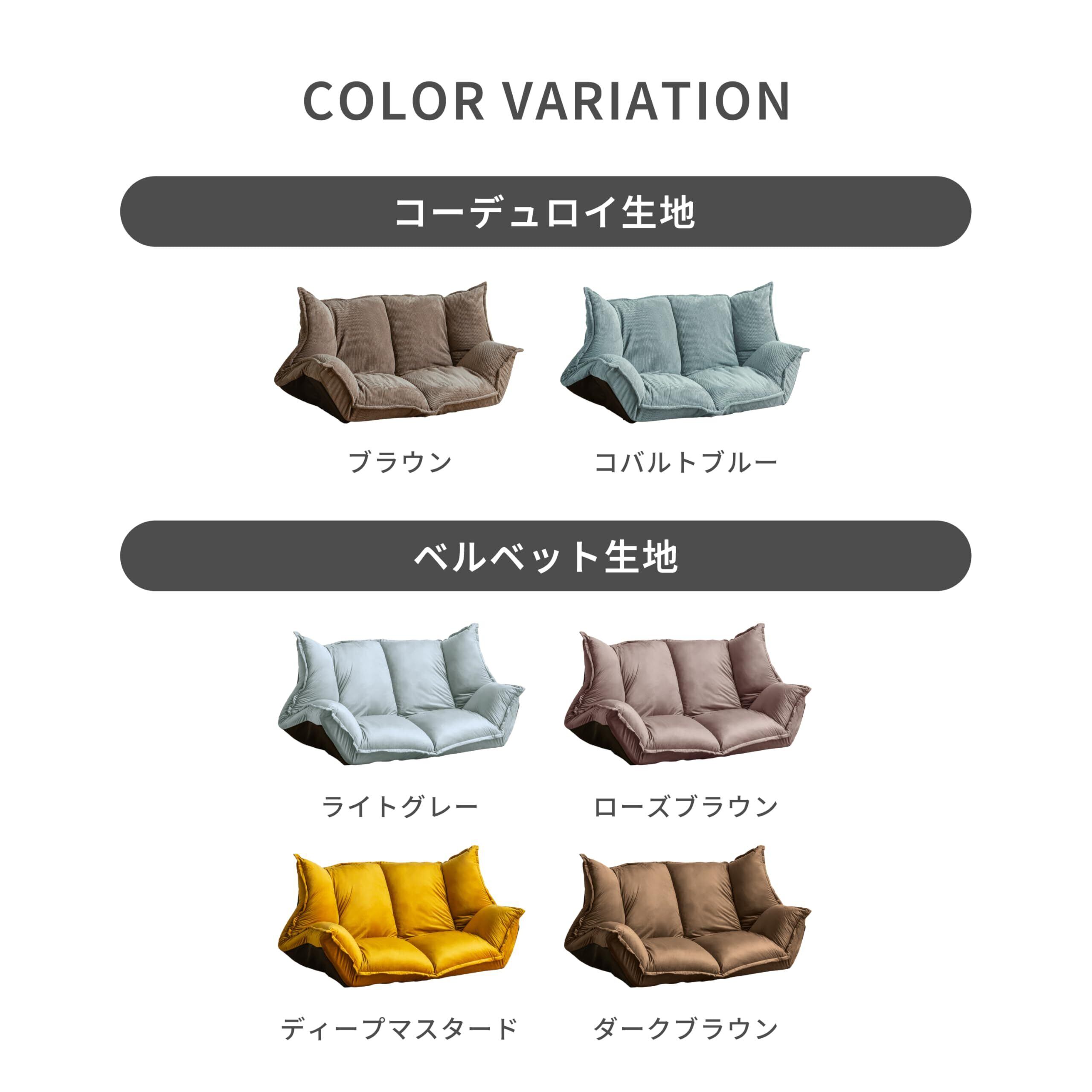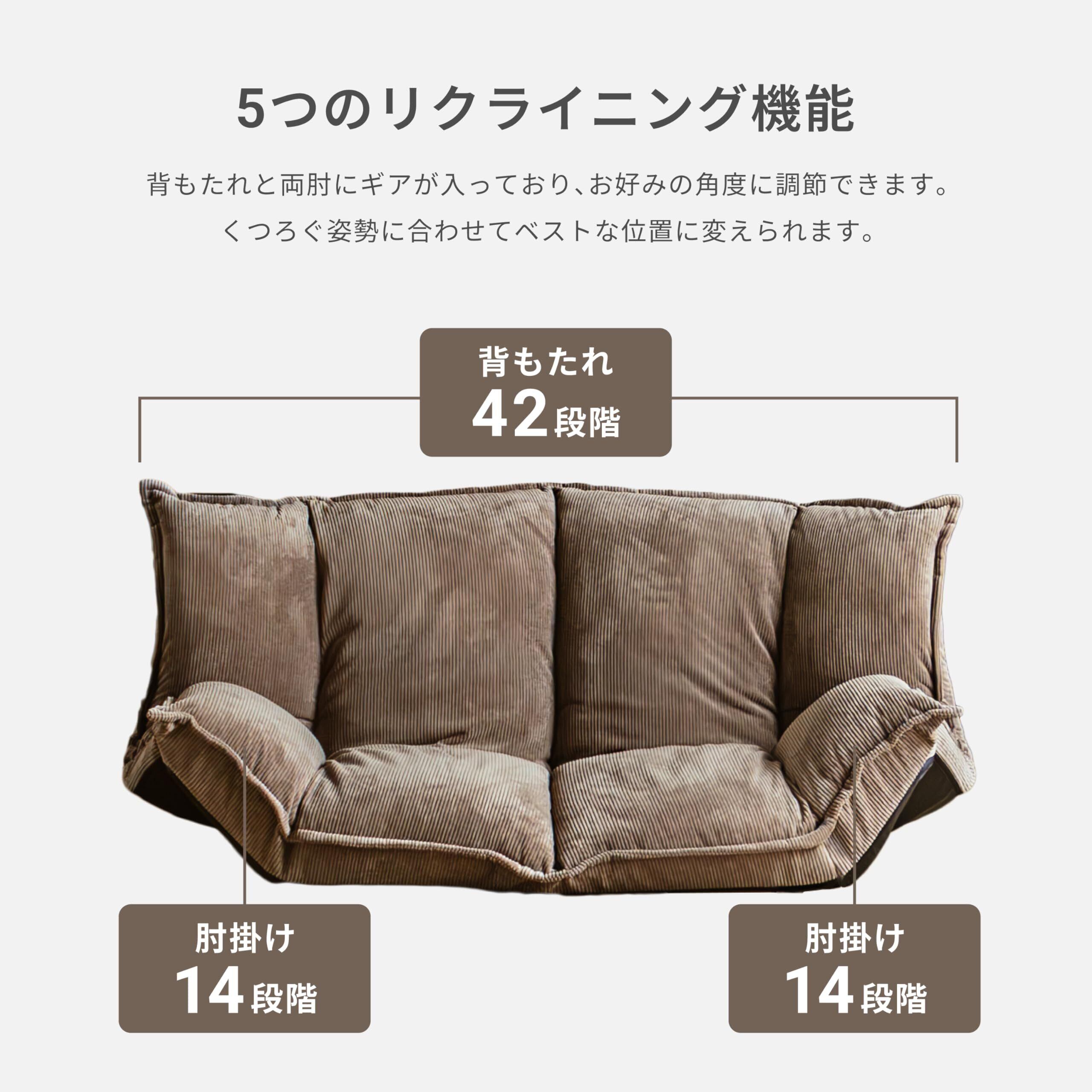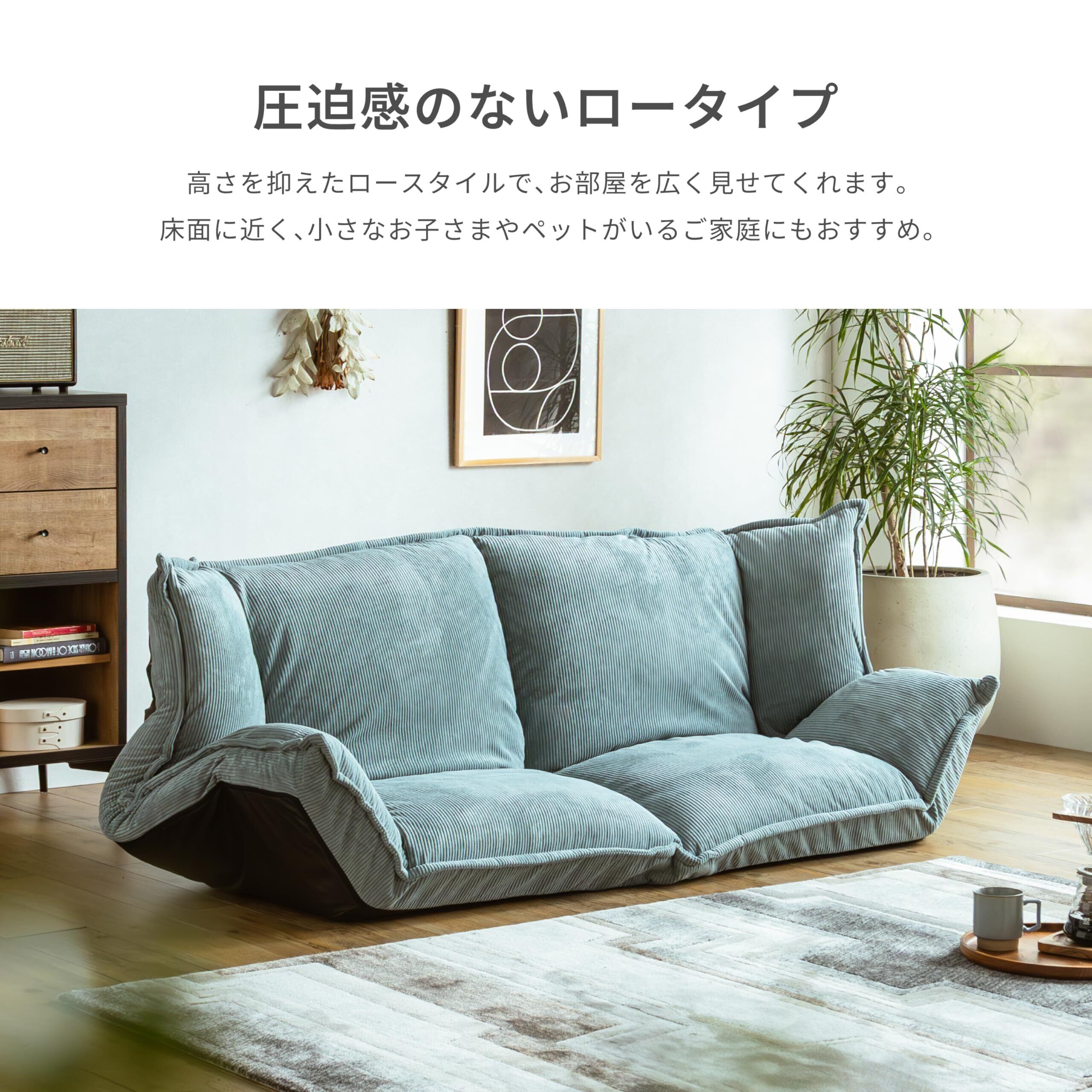 Pure Luxe ソファ フロアソファ ソファーベッド ローソファー 極厚 142cm 2人掛け リクライニング 背もたれ42段階 肘14段階 新生活 (コバルトブルー(コーデュロイ), 2人掛け)