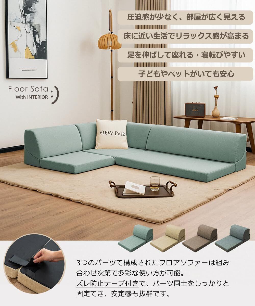 【人気商品】こたつ対応 フロアソファ ローソファ セット レイアウト自由・軽量 床座り/一人暮らし/北欧シンプル With ミント bas0001-set-1