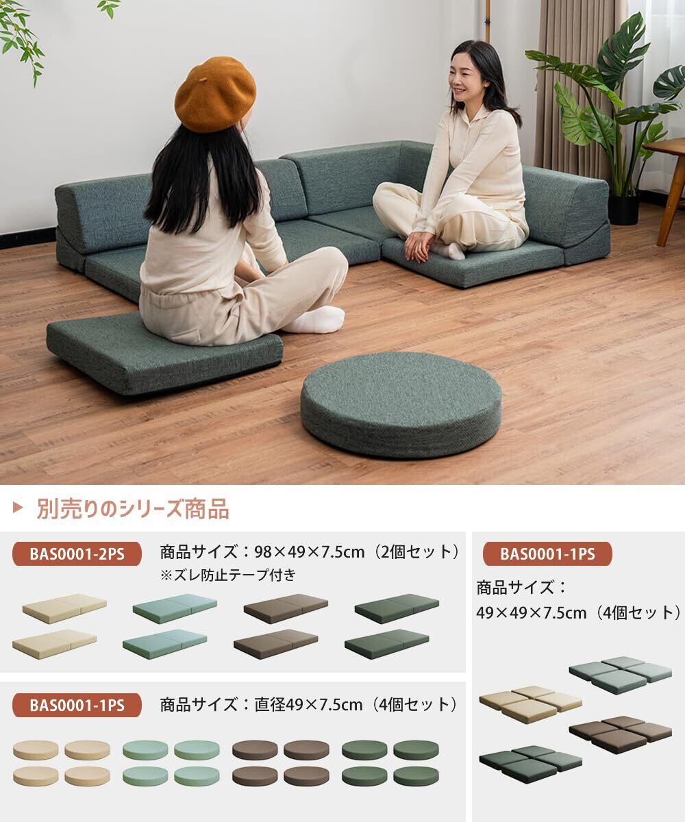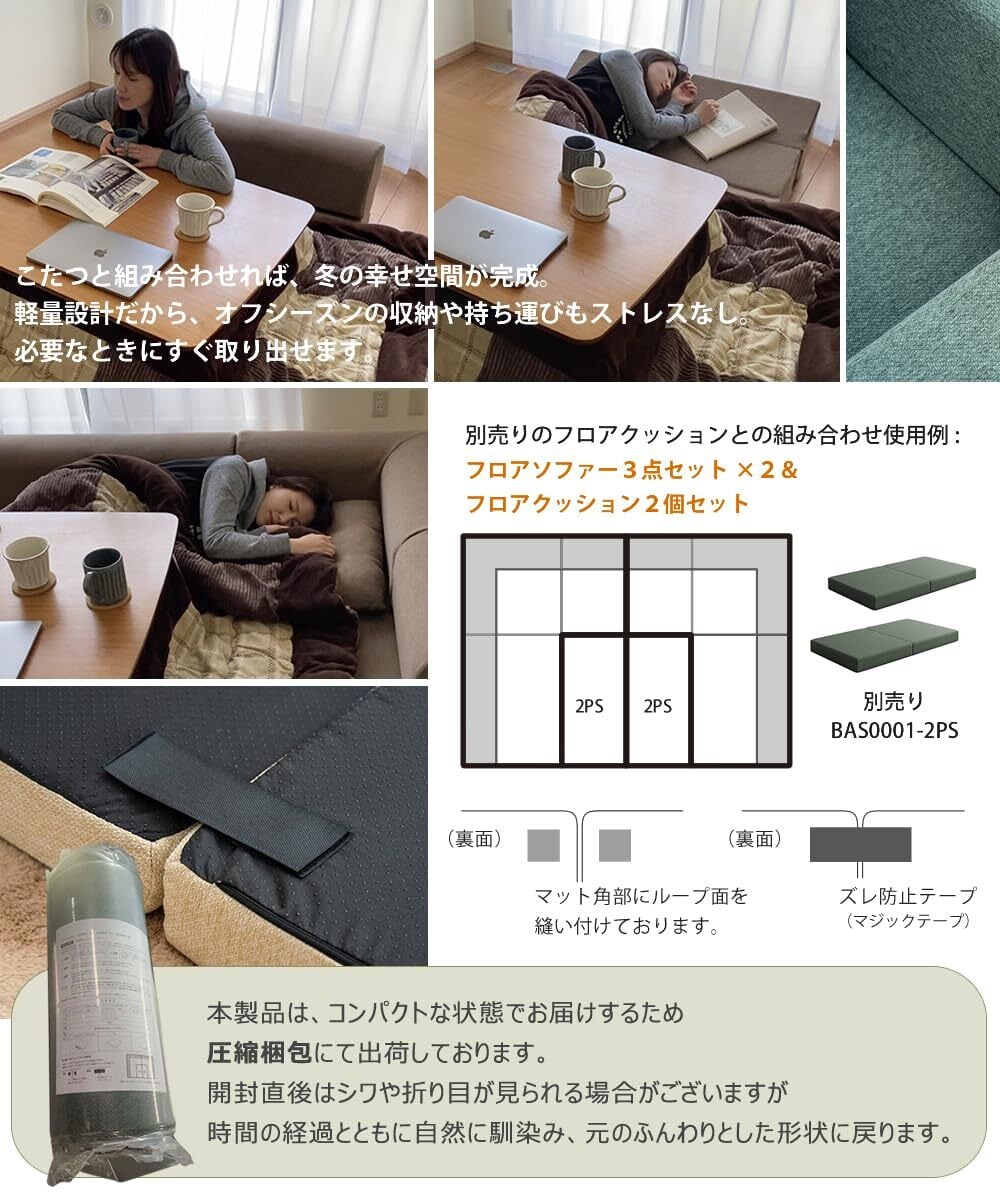 こたつ対応 フロアソファ ローソファ セット レイアウト自由・軽量 床座り/一人暮らし/北欧シンプル With ミント bas0001-set-1