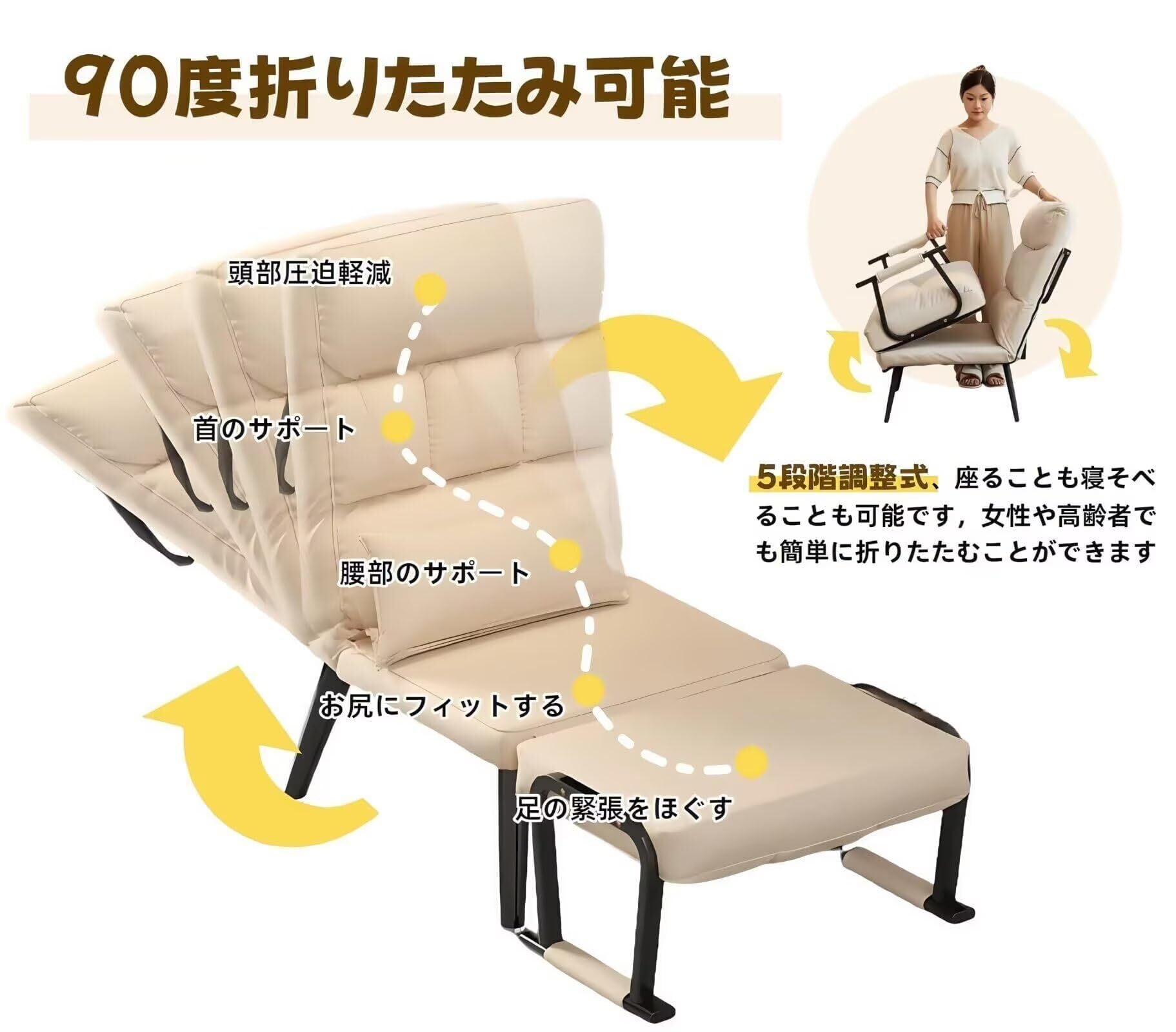 ソファーベッド 折り畳み カウチソファー 幅65cm 1人掛け 多機能 3ウェイソファ 5段階調節可能 人間工学 クッション付き コンパクト お洒落 座り心地良い 簡単装着 客間 寝室 家庭用 日本語説明書付き(ホワイト,65x65x98.5cm)